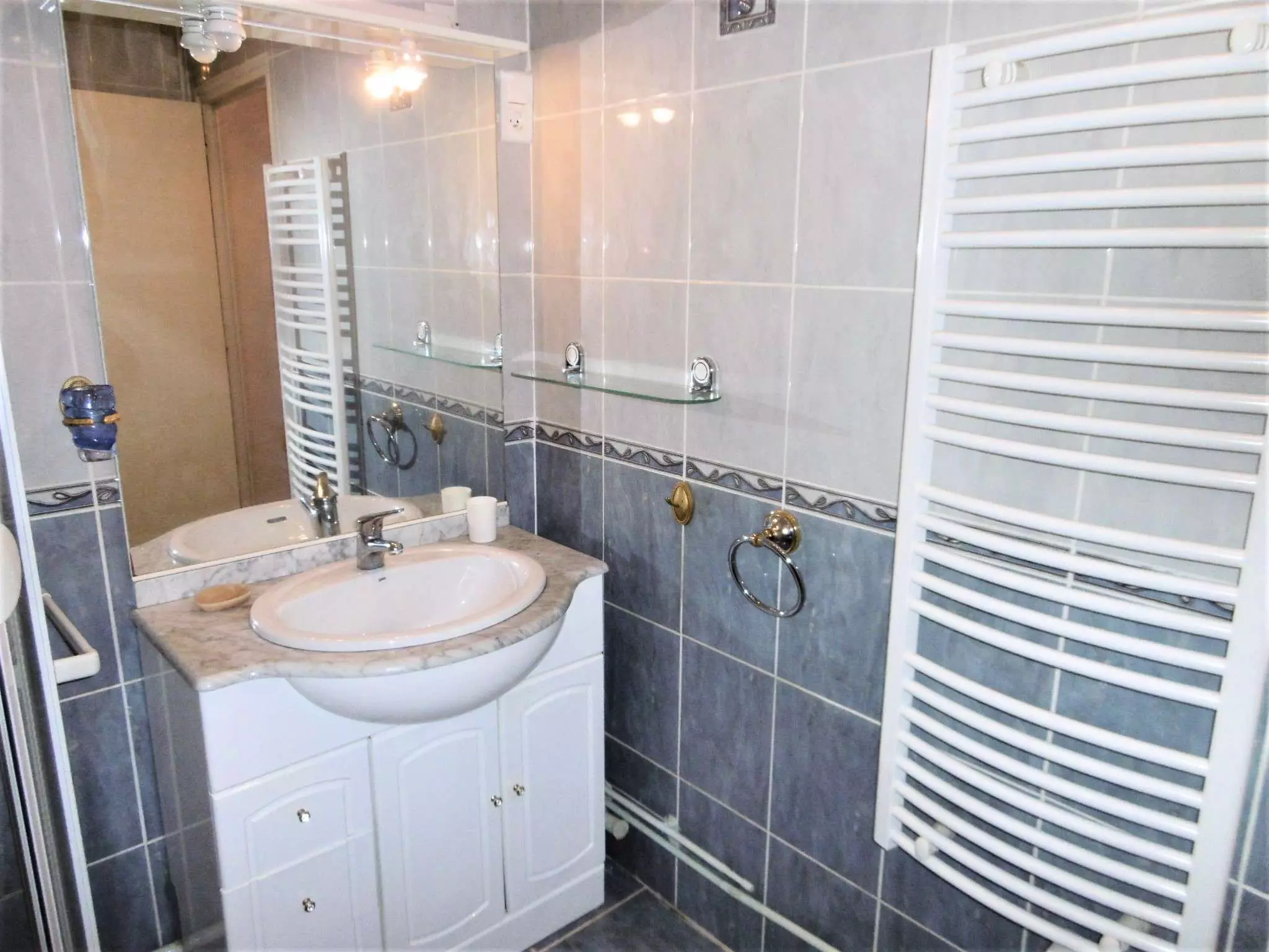 - Salle de bain 2 : une douche, sèche-serviettes, wc.