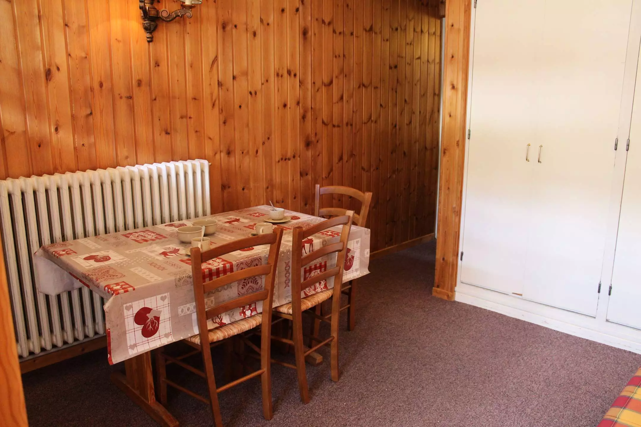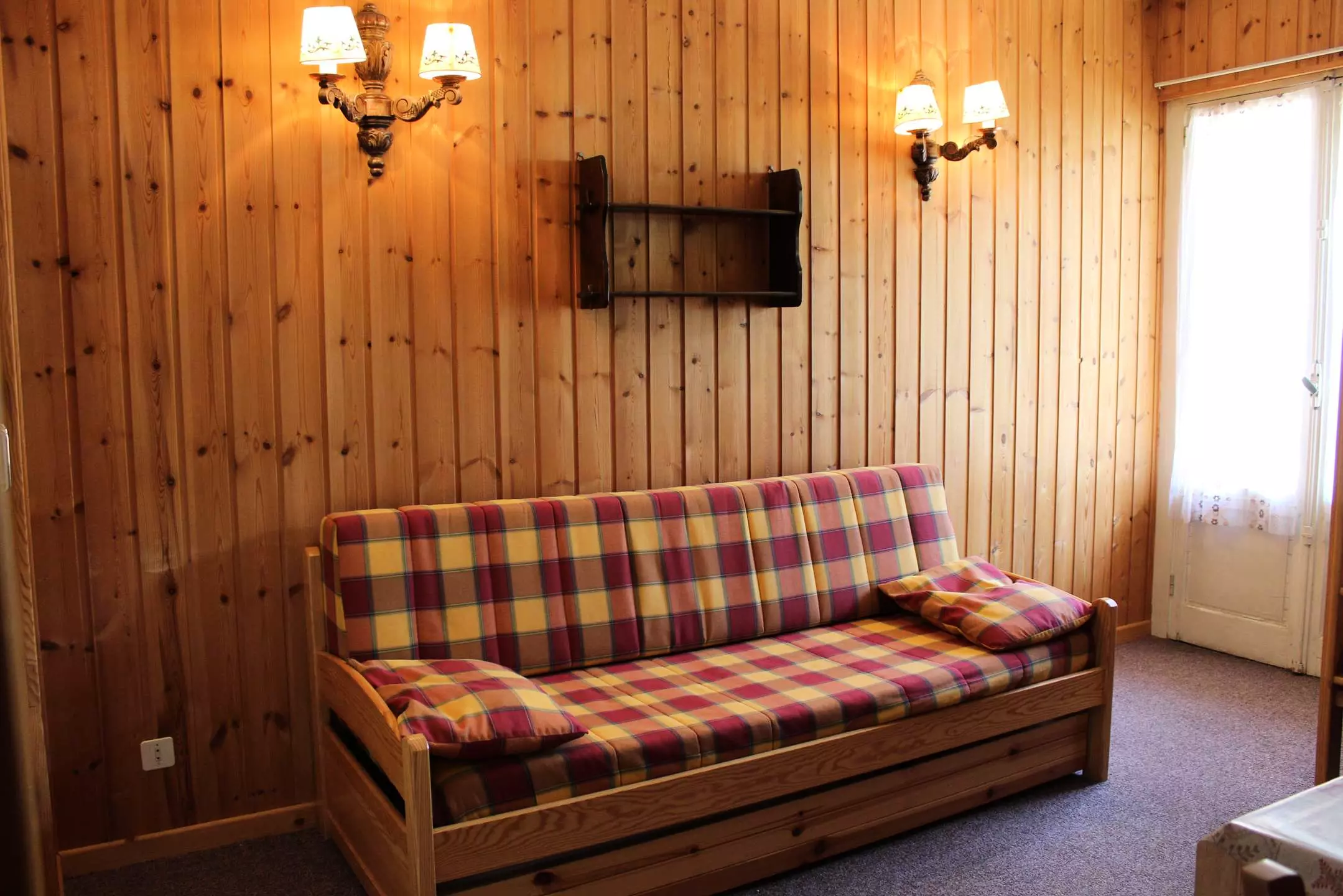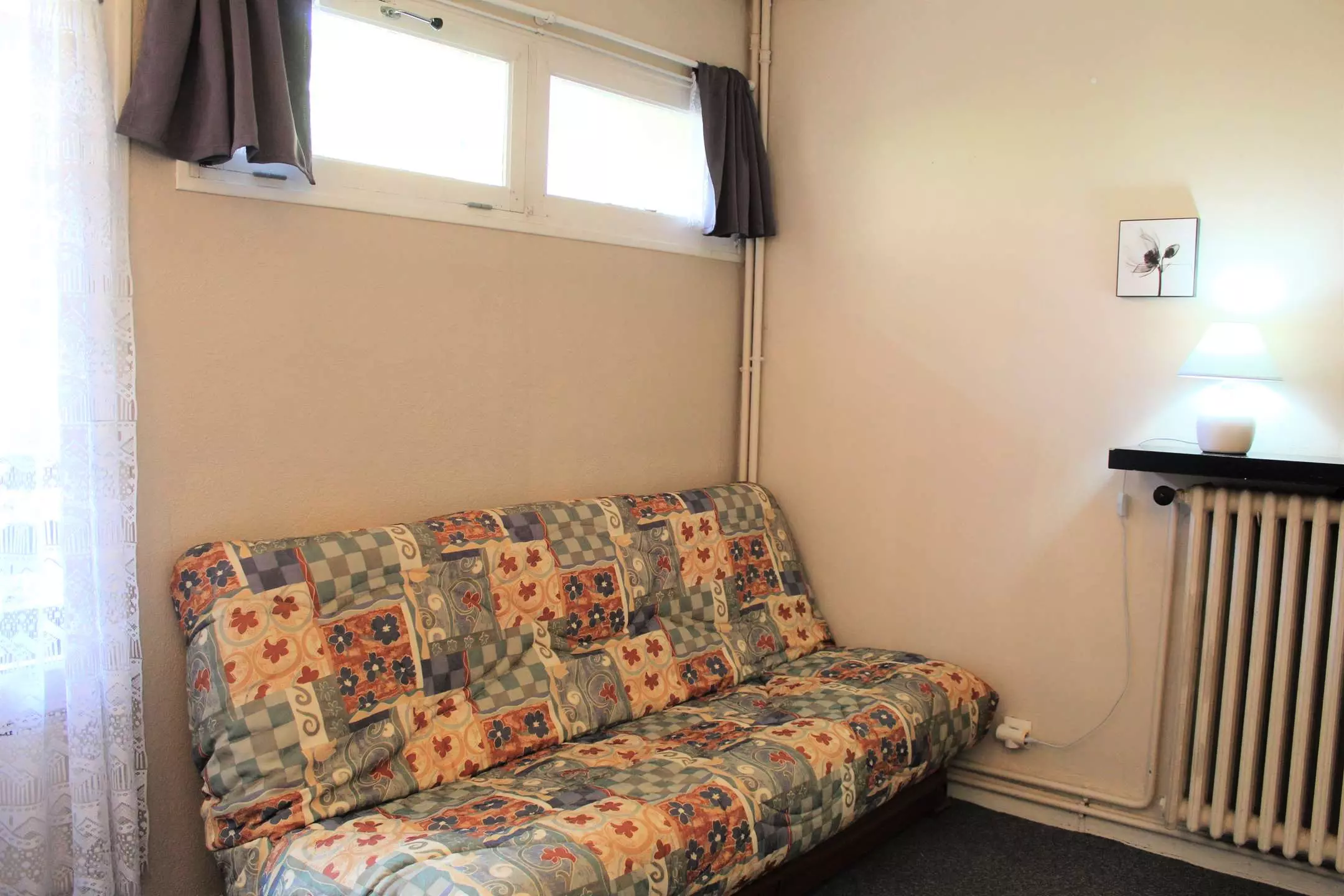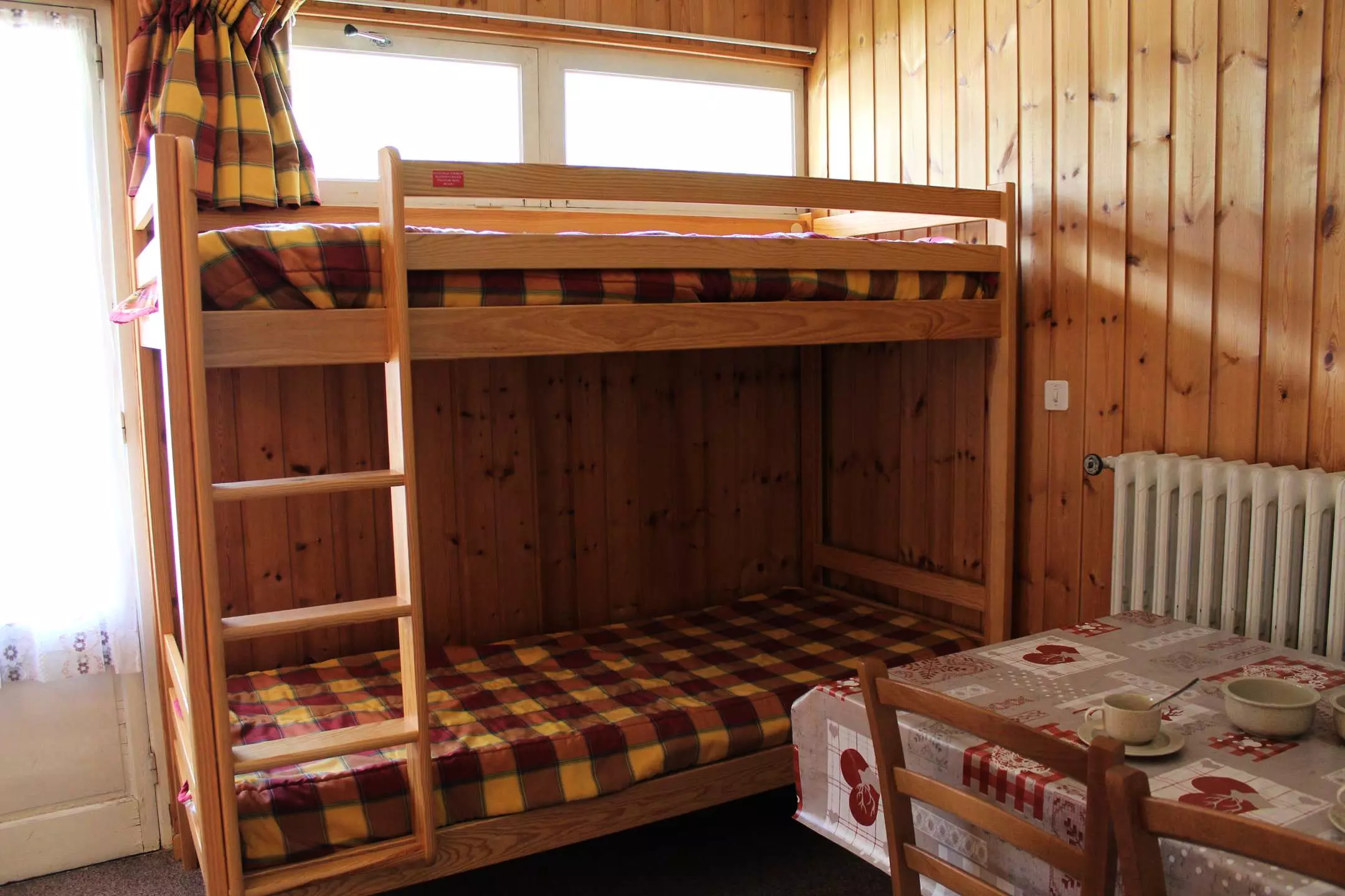 Cette location au ski se compose d'un coin cuisine à l'entrée et d'un séjour disposant de deux lits gigognes une place et de deux lits superposés une place. L'appartement dispose d'une salle d'eau avec douche et WC.