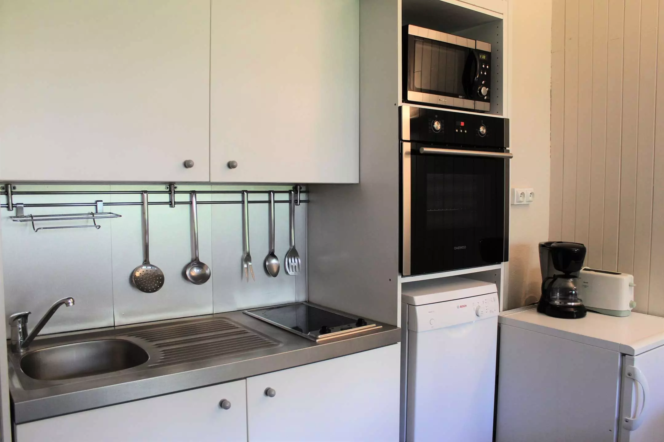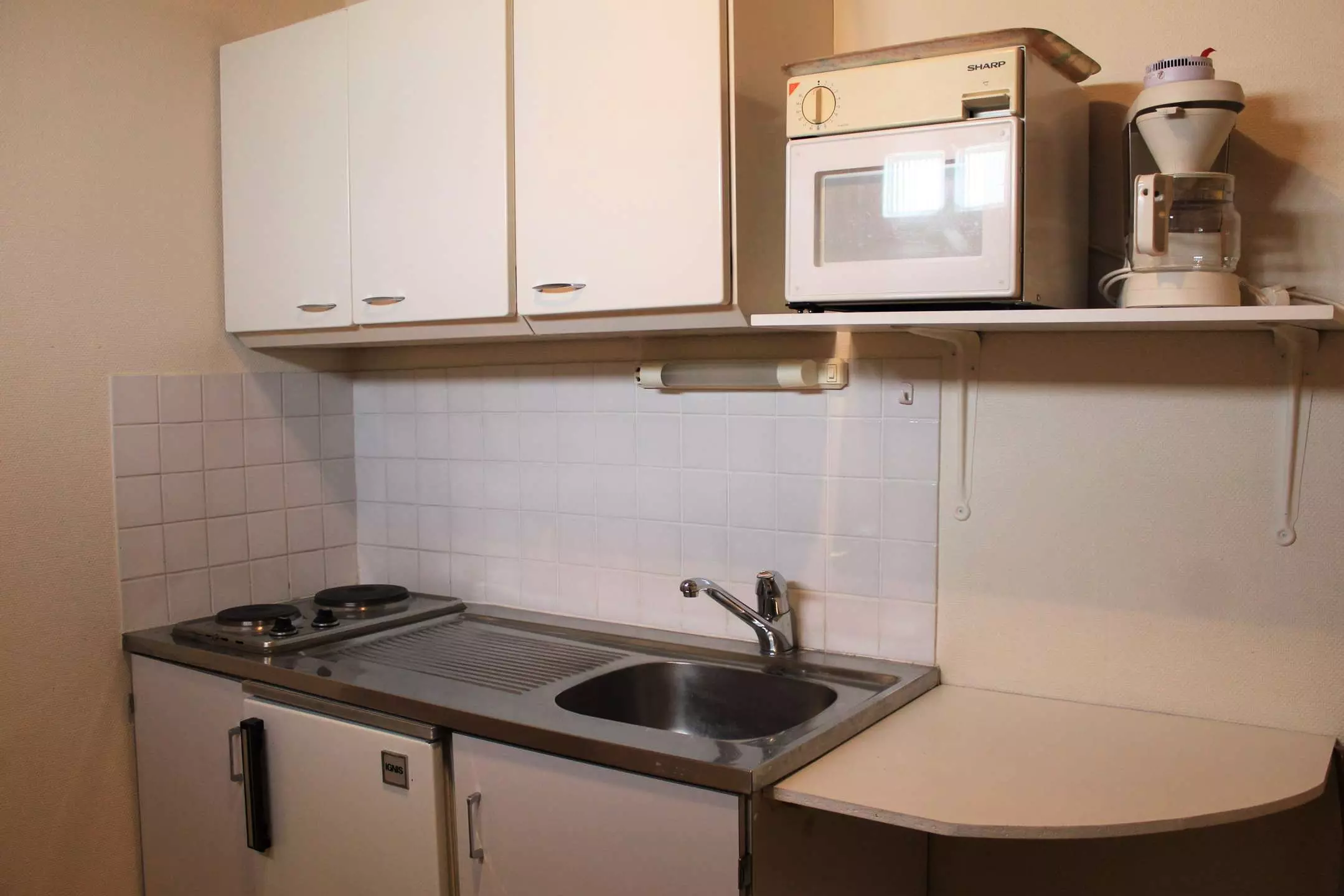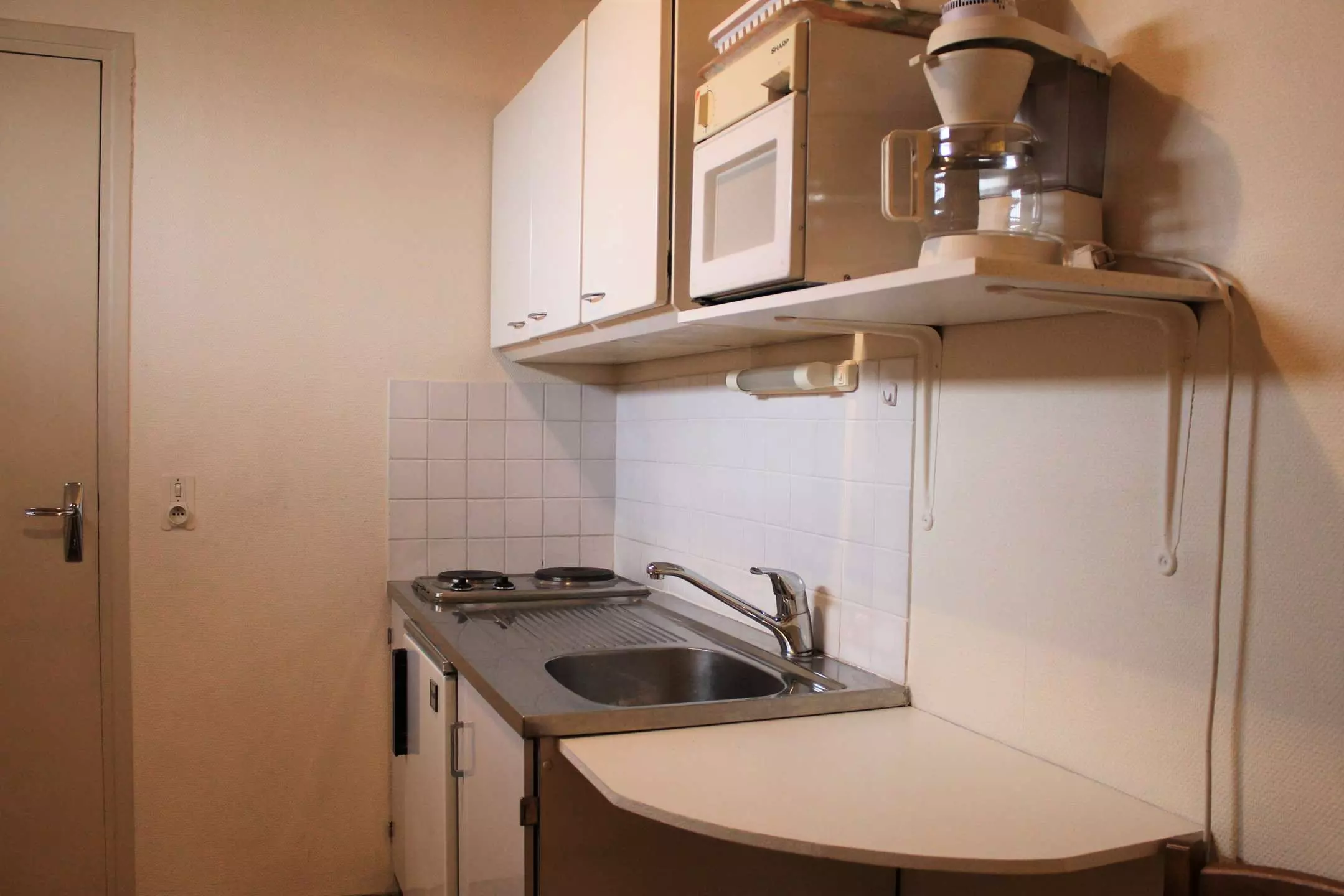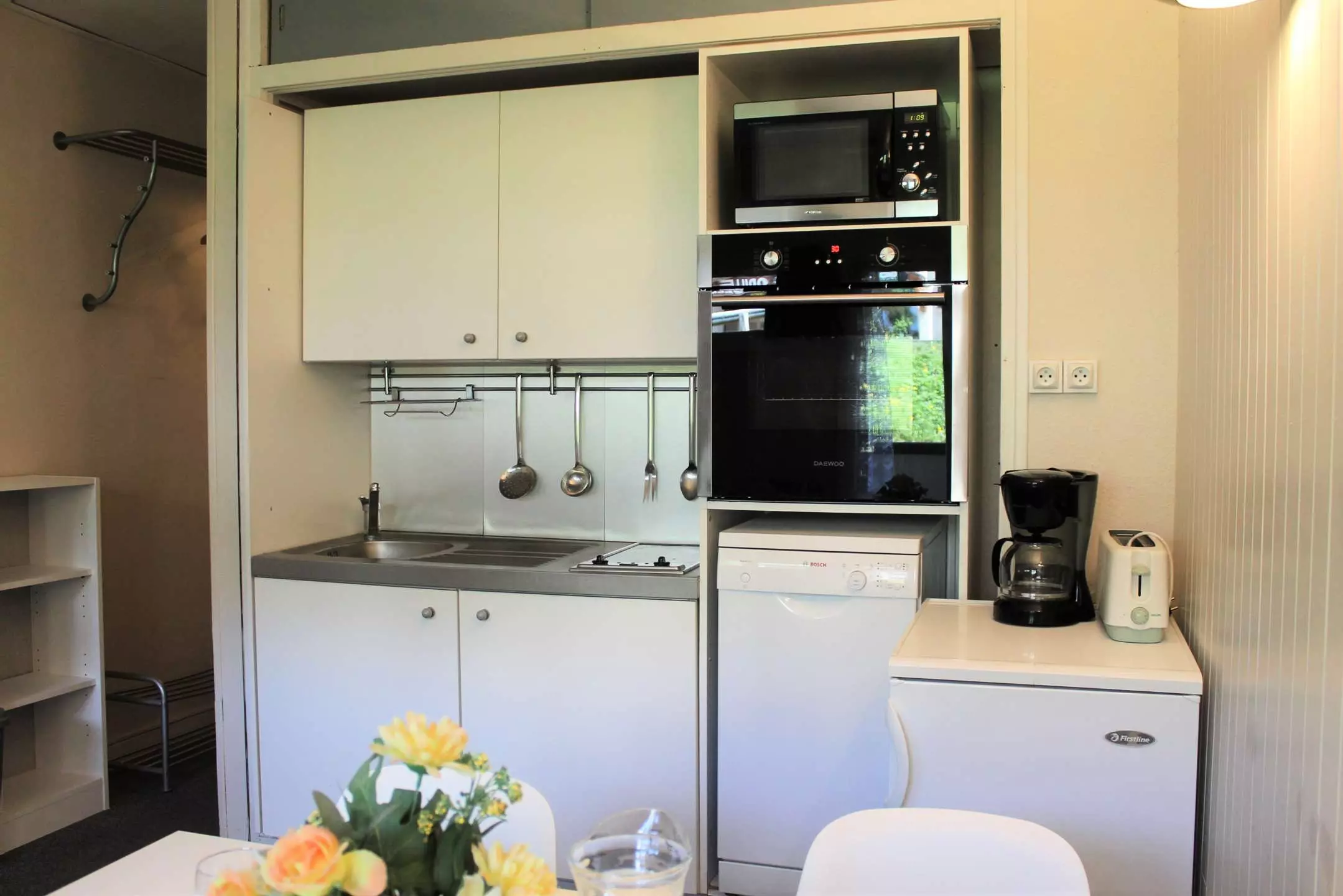 Cette location au ski se compose d'un coin cuisine à l'entrée et d'un séjour disposant de deux lits gigognes une place et de deux lits superposés une place. L'appartement dispose d'une salle d'eau avec douche et WC.