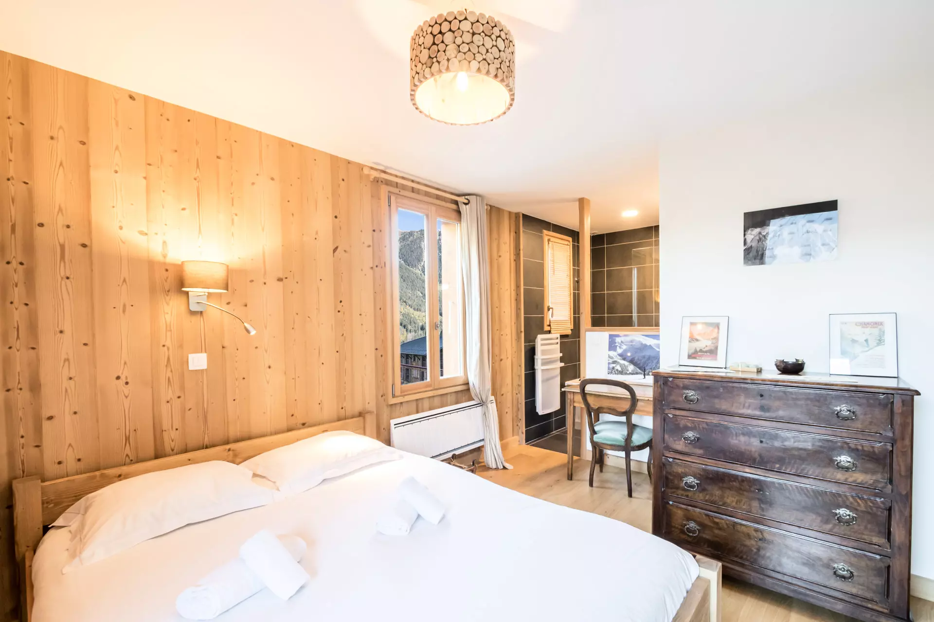 Charmant chalet de 140m², pouvant accueillir 6 à 8 personnes dans ses 3 chambres (dont une chambre "famille"), situé sur les coteaux, à l'entrée de Chamonix.