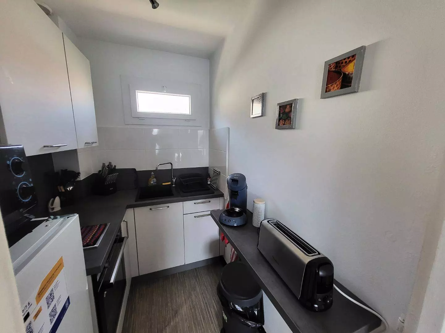 Idéalement situé à 200m de la plage et des commerces, ce logement refait à neuf et classé 2 étoiles aux Gites de France saura vous accueillir pour des vacances en famille, (jusqu'à 5 personnes). Situé au premier étage sans ascenseur ce bien possède un séjour avec canapé (non convertible) et télévision (sous réserve d'une bonne réception), une kitchenette équipée, une chambre avec un lit double, une chambre avec 2 lits superposés et un lit simple, une salle d'eau et des WC indépendants. Literie neuve.