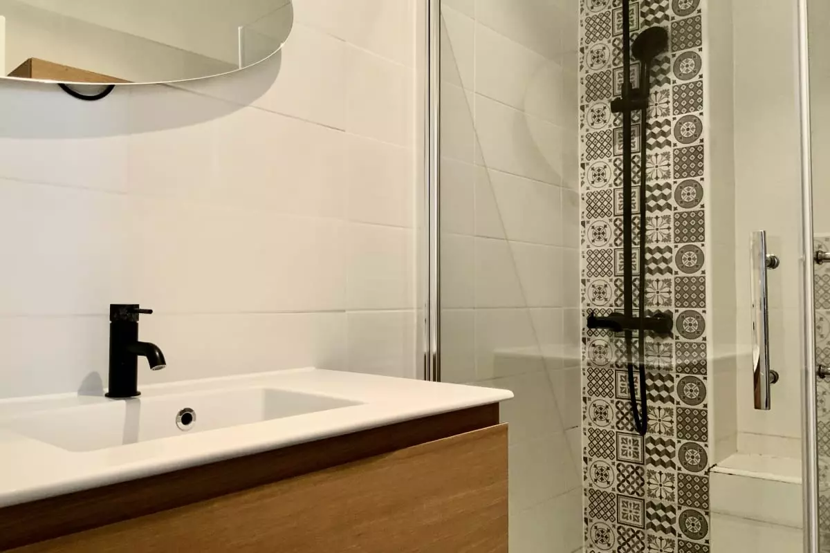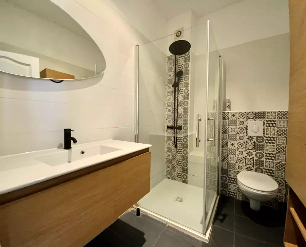 Vous disposerez également d’une salle d’eau entièrement rénovée, avec une douche à l’italienne et une décoration moderne.
