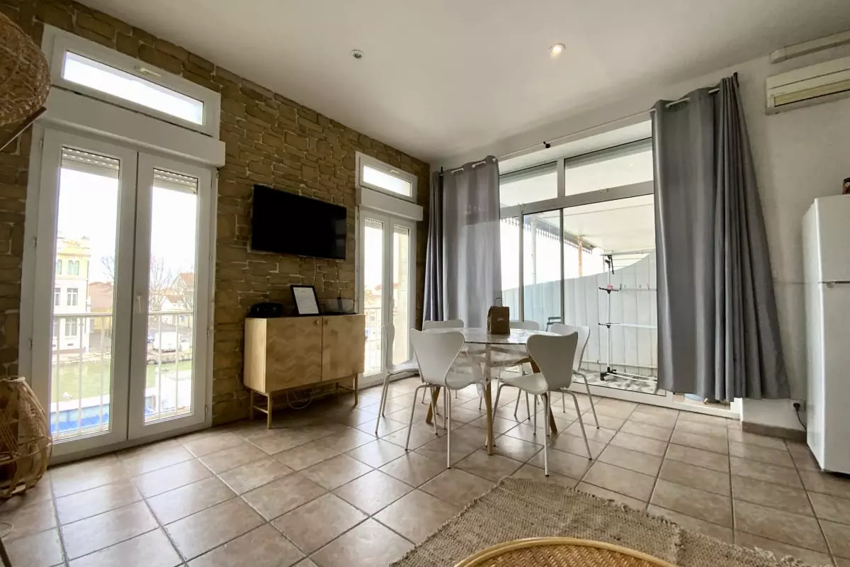 Cet appartement se trouve sur la rive gauche du Grau-du-Roi, un secteur emblématique et identitaire marquant l'entrée du port de pêche. À seulement 100 mètres de la plage, il est idéalement situé pour profiter des activités locales et des commodités.