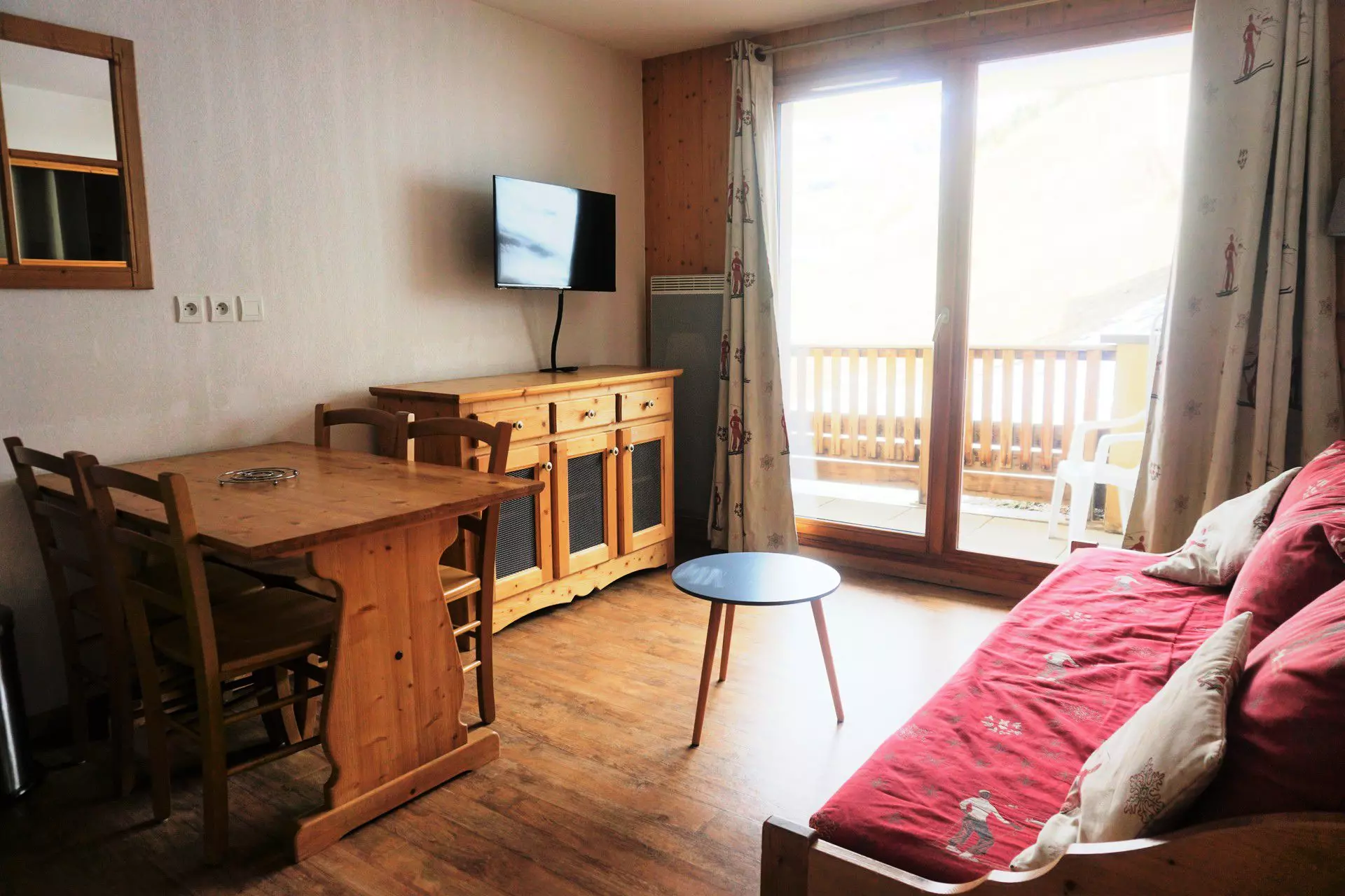 Appartement 2 pièces cabine de 36 m², situé au à étage de l'accueil, bâtiment A ; balcon exposition est sur station.