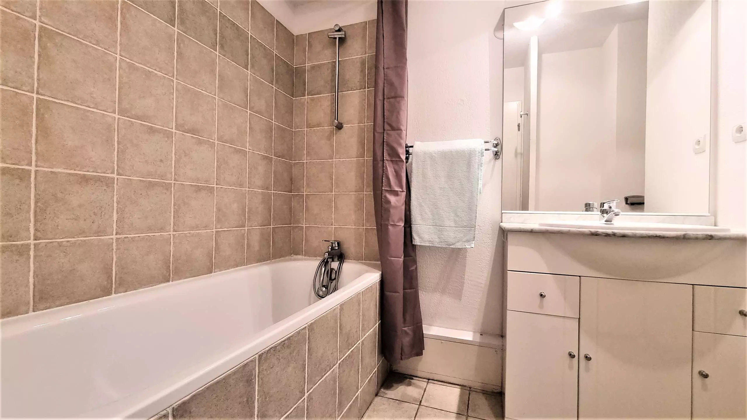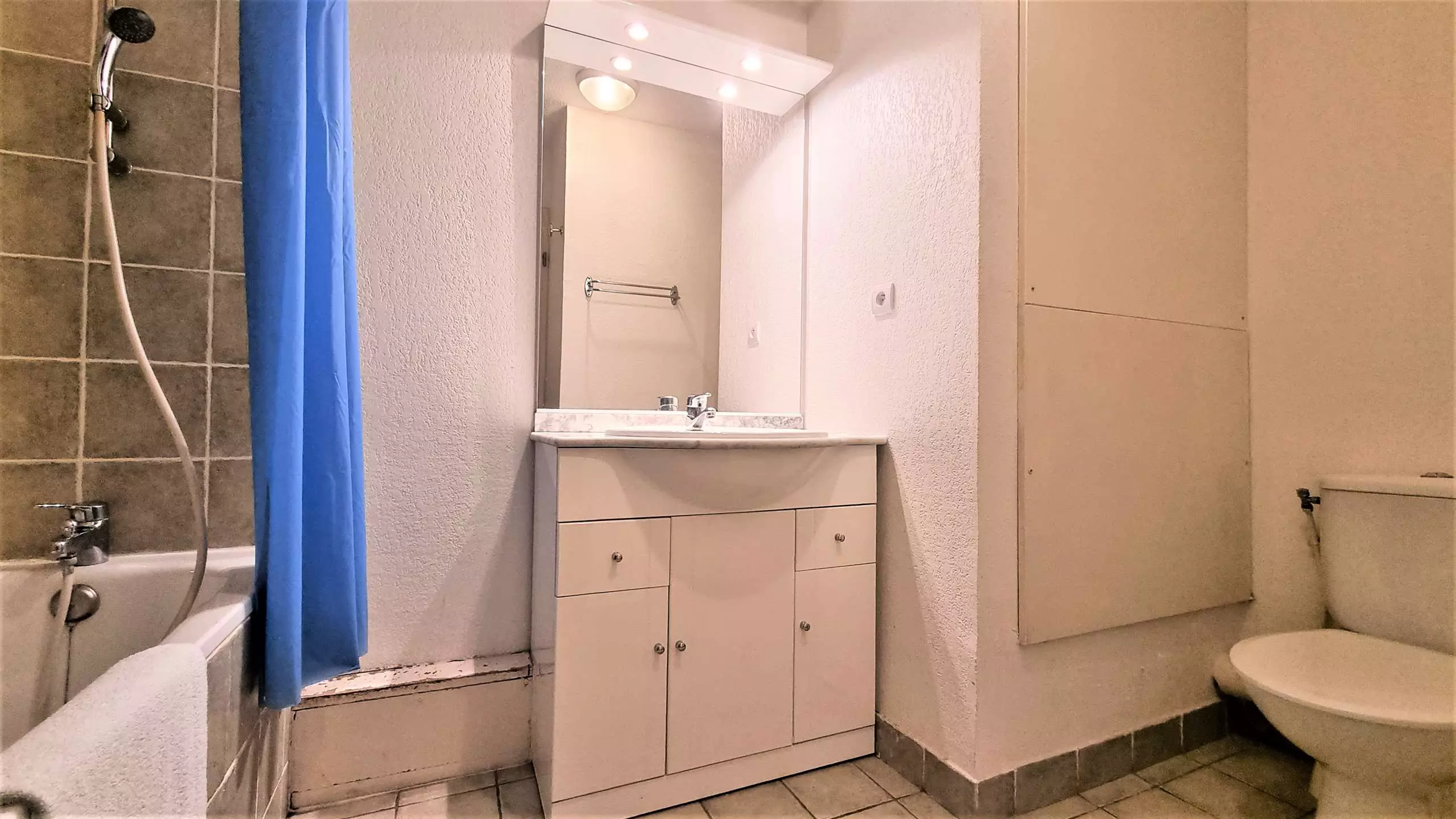 Il se compose d'un couloir qui dessert la salle de bain avec baignoire et wc, ainsi que la pièce à vivre.