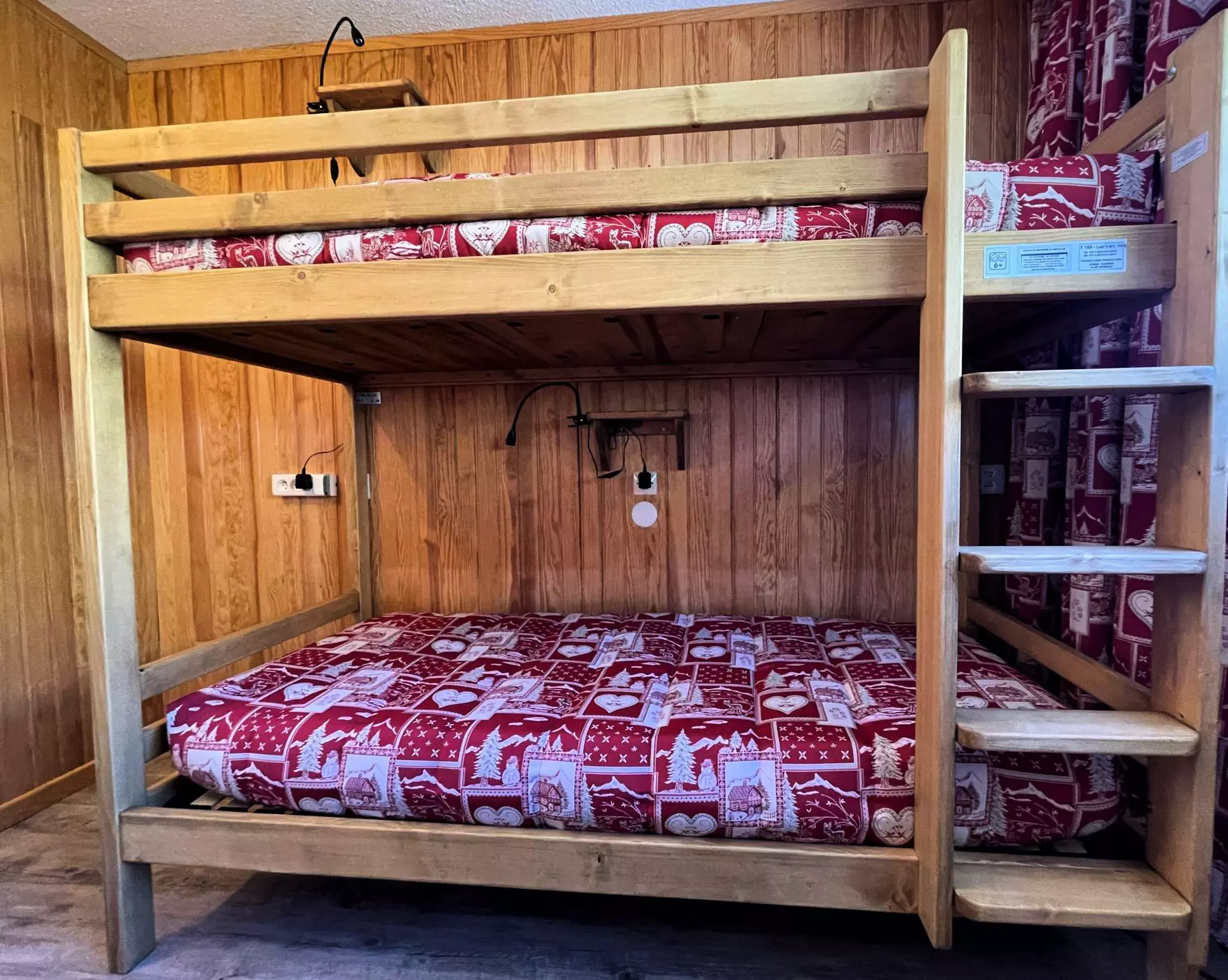 Chambre : 1 lit pour 2 personnes (140cm), 1 lit superposé (2x80cm), télévision
