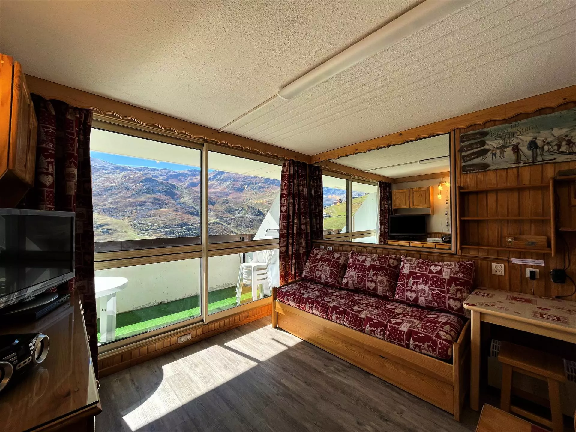 Résidence Tougnette (N°415), studio pour 3 personnes 20m², au 4ème étage par ascenseur, balcon exposé Sud-Ouest, vue sur la montagne. Résidence située au pied des pistes