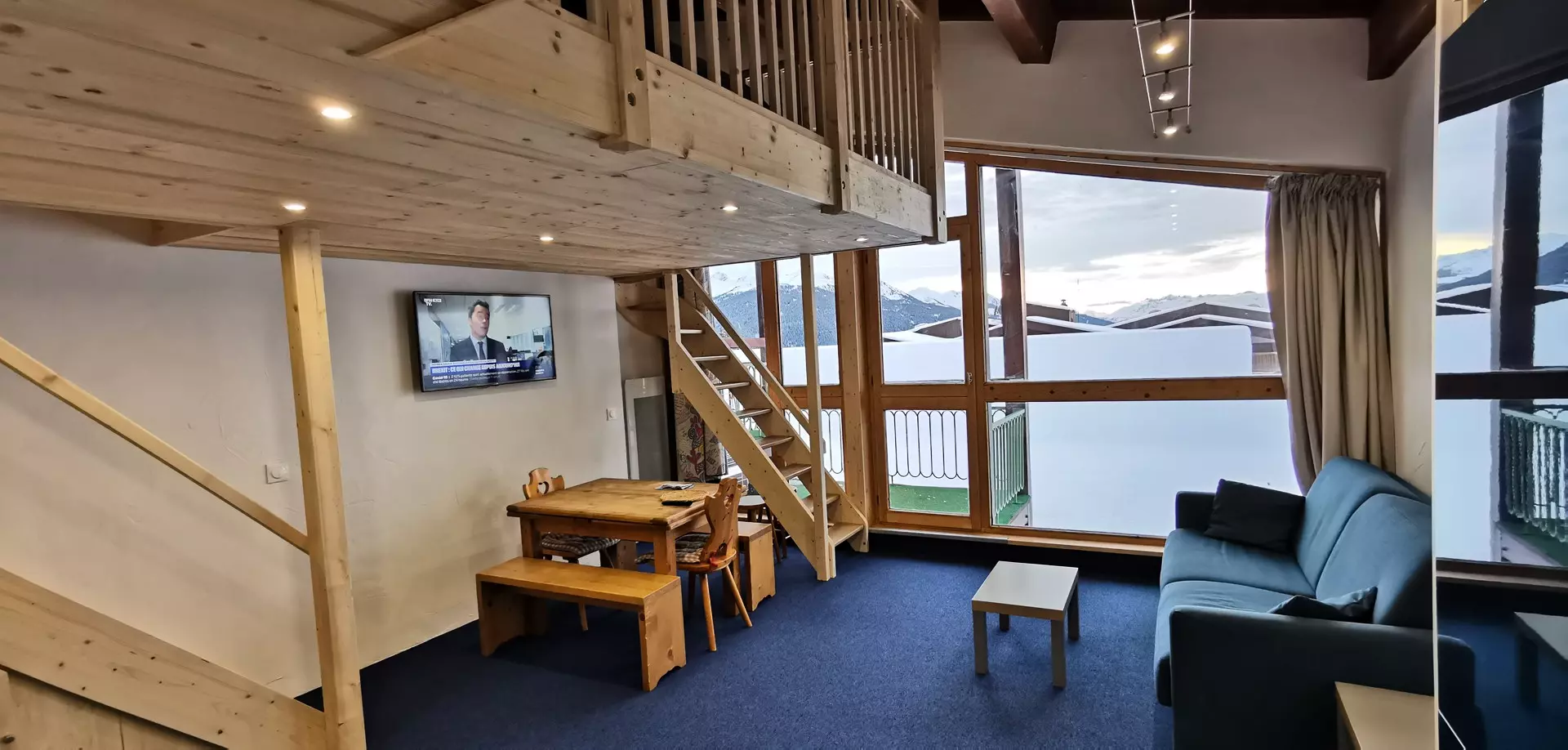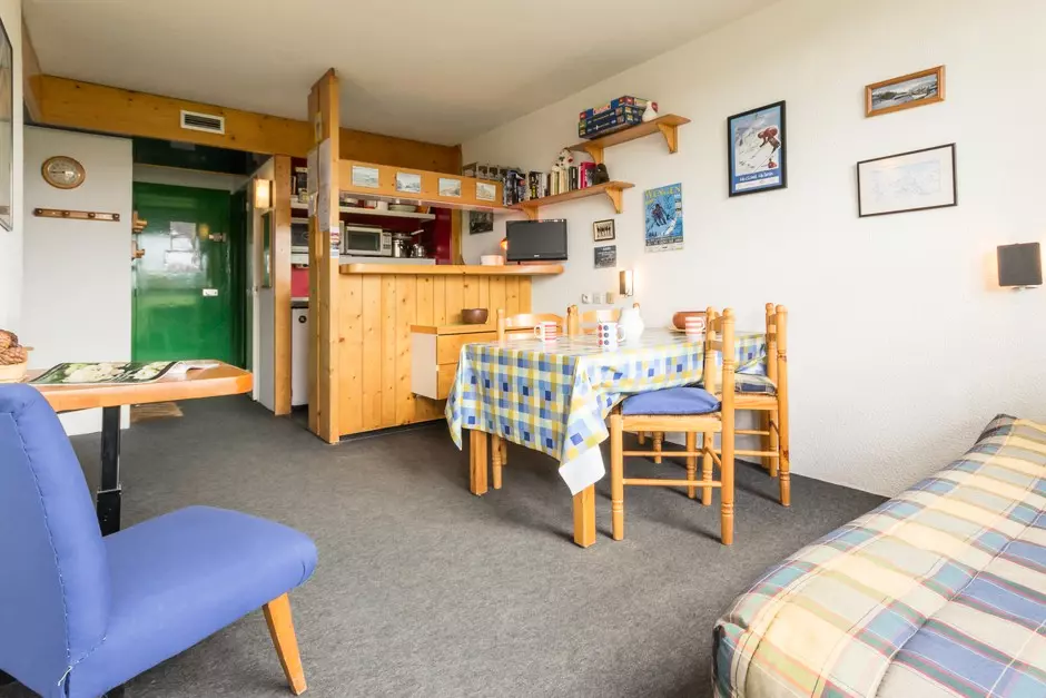Appartement équipé pour 5 personnes, au pied des pistes et des commerces, dans le village des Villards, d'une superficie de 33m², au 2ème étage résidence Les Tournavelles 2.