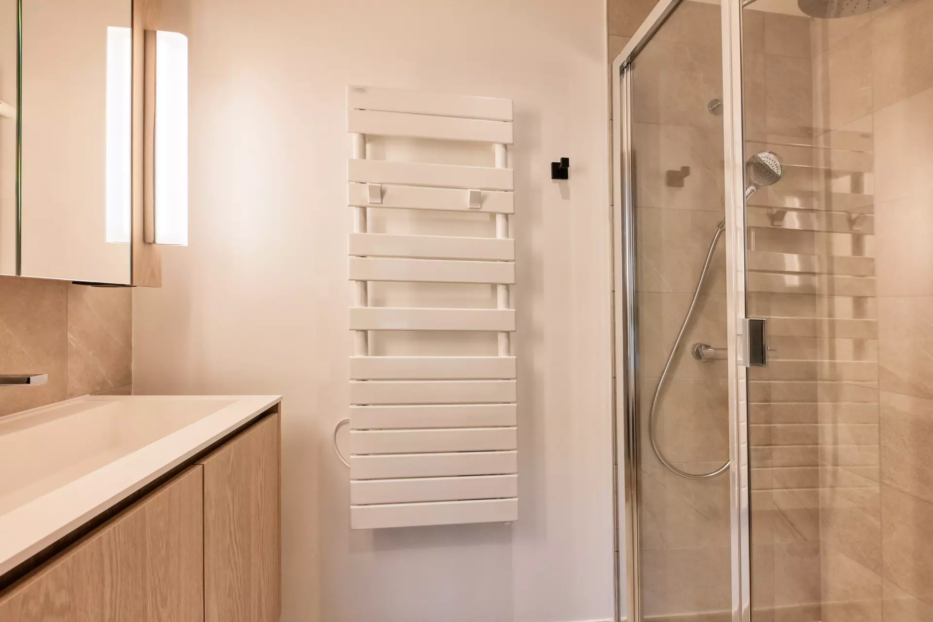 - Deux chambres doubles (literie 160x190), chacune avec salle de bain (douche et double vasque) et accès au jardin
