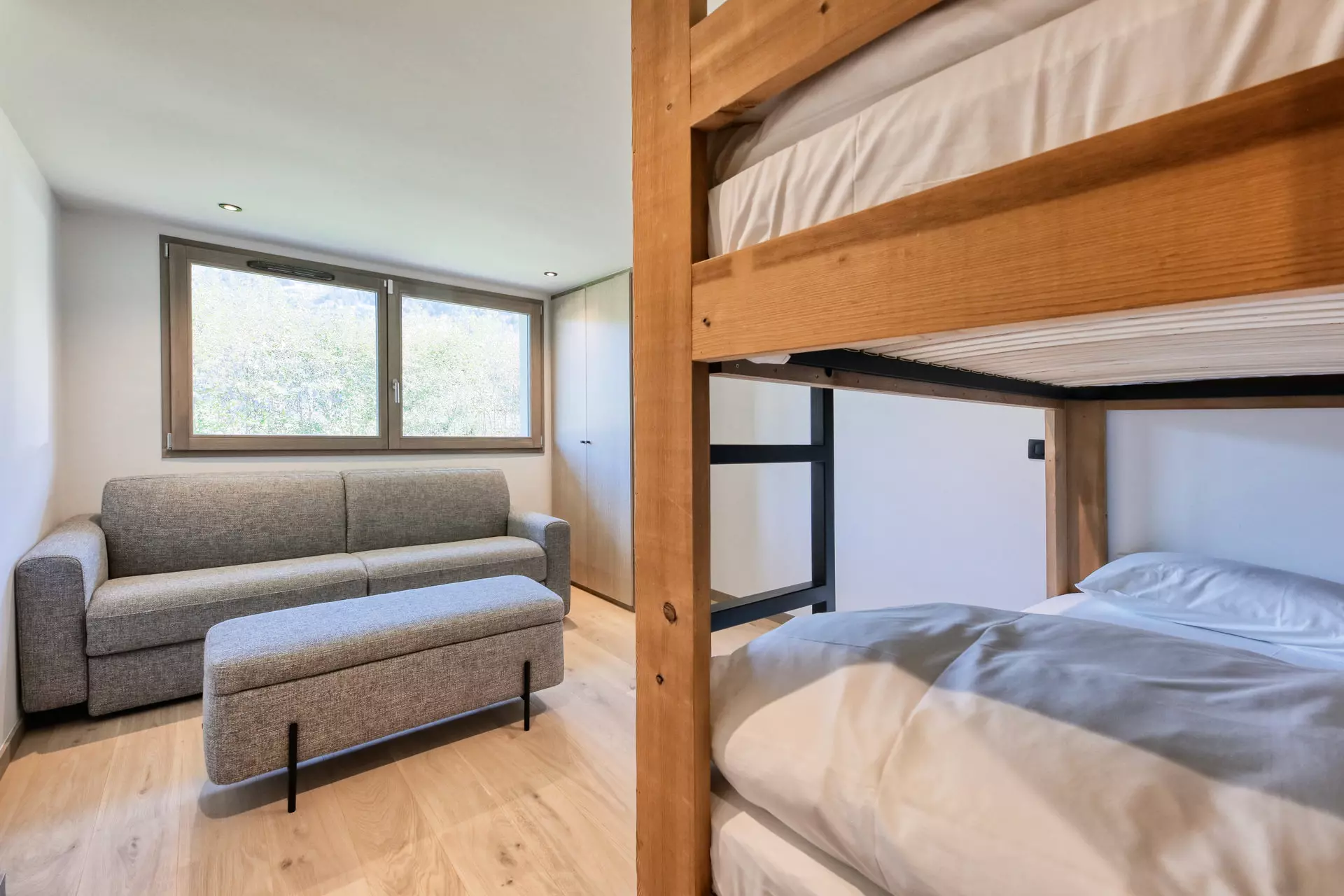 - Une chambre avec 2 lits superposés ( 4 couchages de 80x190cm) et télévision