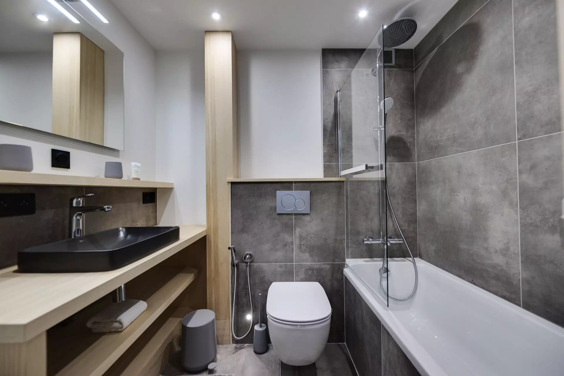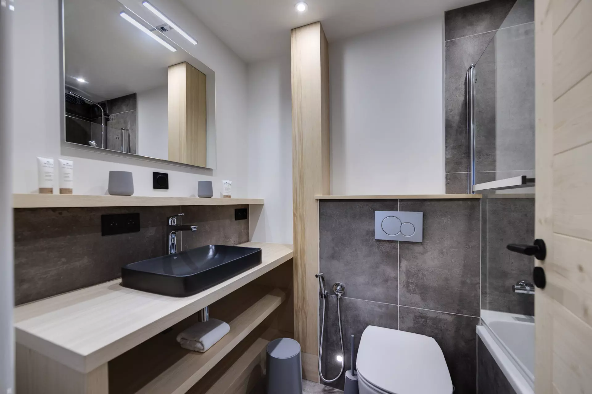 - Salle de bain avec baignoire et WC