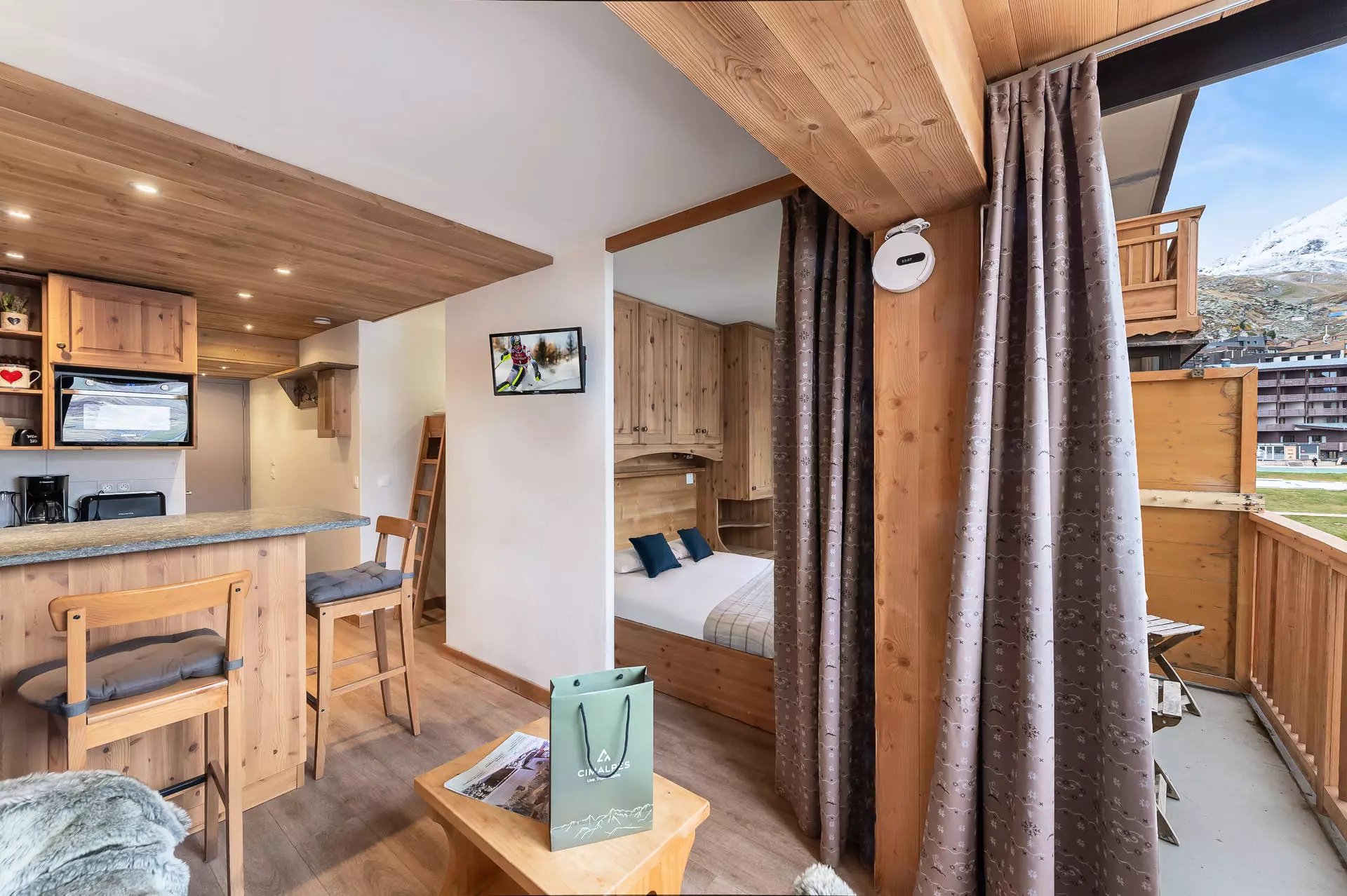 Appartement chaleureux de 28 m² pour 4 personnes situé au deuxième étage de la résidence Vanoise en plein centre de la station de Val Thorens à proximité des pistes et des commerces. En plus de sa superbe situation, l'appartement est très agréable et bien agencé. Il dispose d'une cuisine équipée ouverte sur le séjour. La chambre double offre une vue sur les pistes.