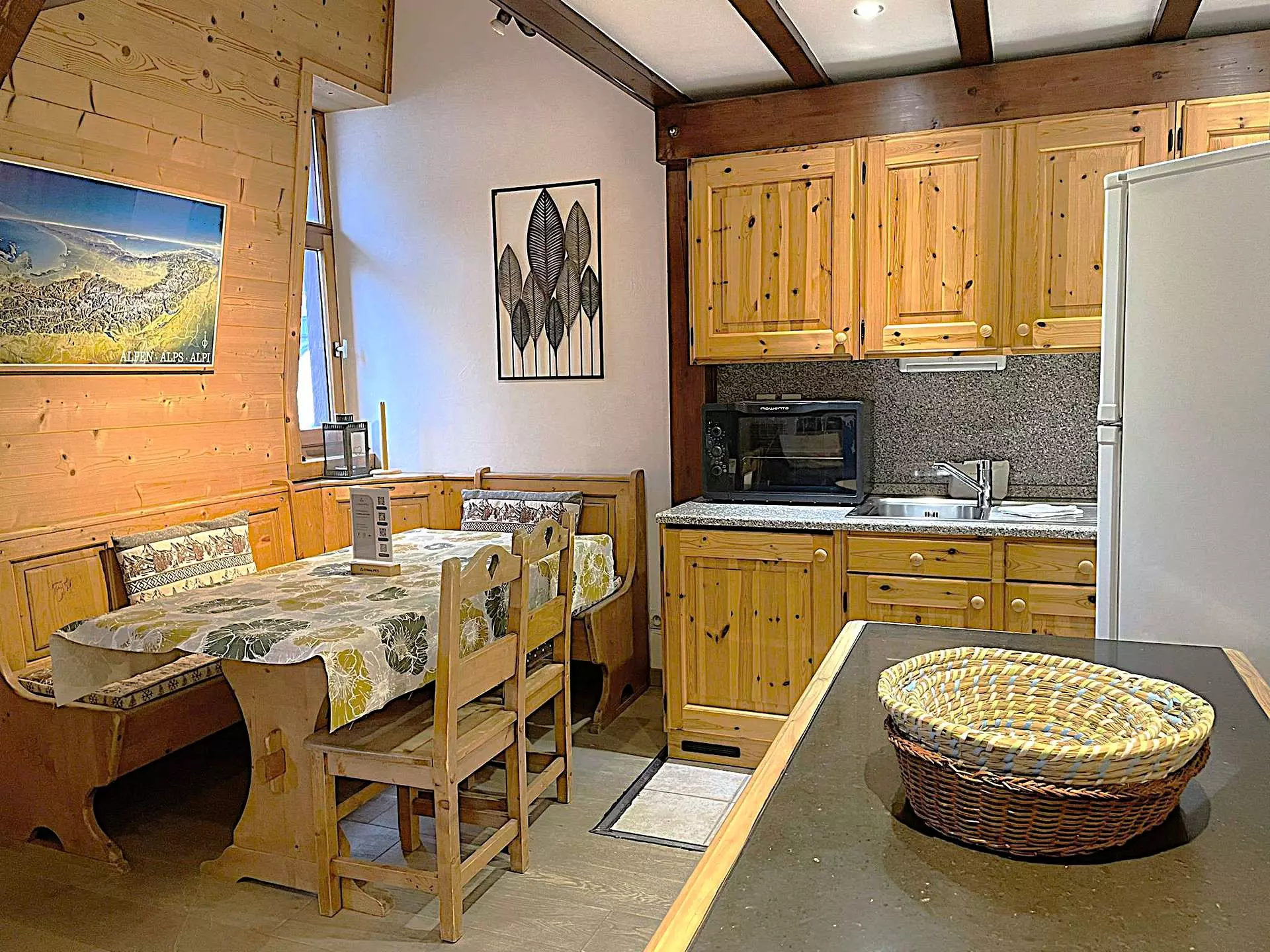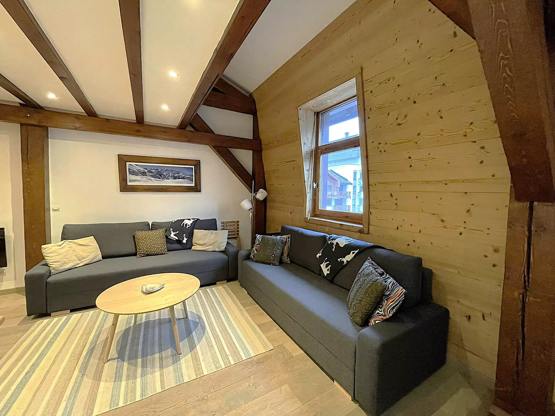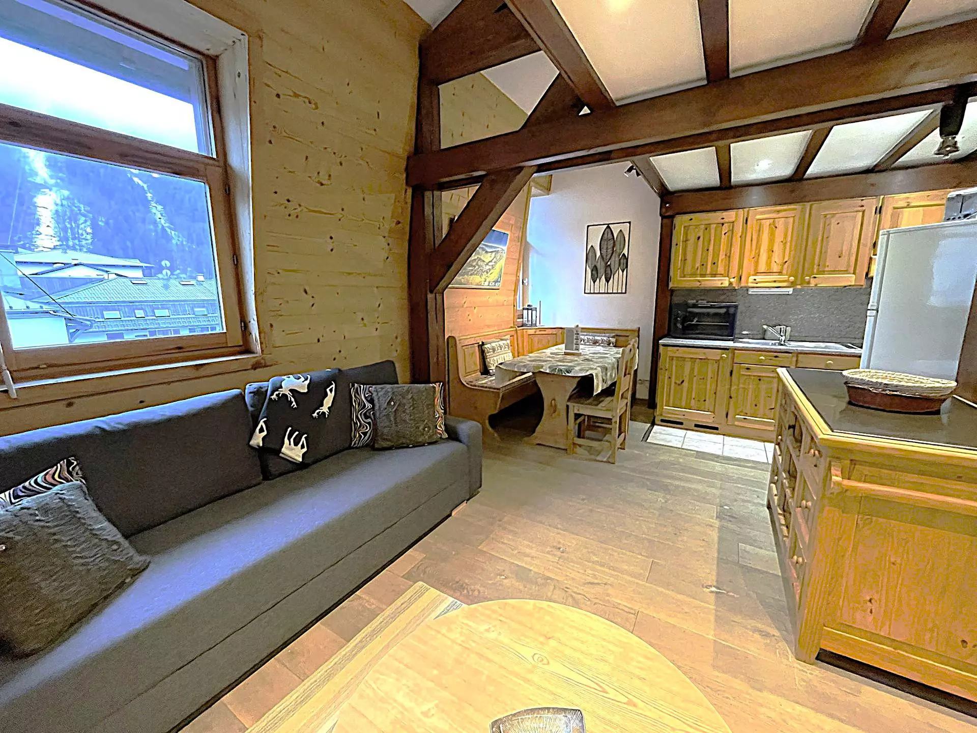 - Espace de vie avec espace repas, salon avec TV et canapé lit double (130x190)