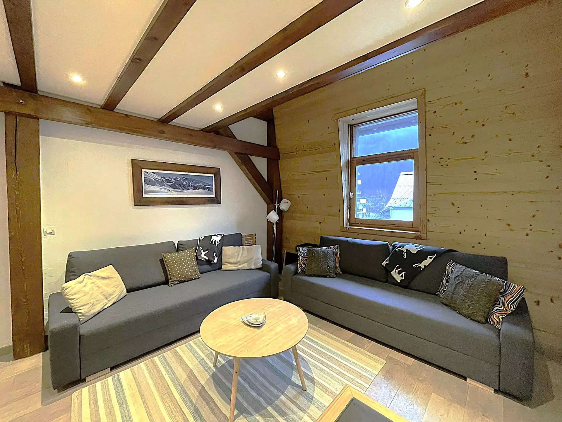 Bel appartement en duplex sous pente d'une superficie de 65m², classé 2 étoiles, pouvant accueillir 6 personnes. Il est situé au 3ème étage sans ascenseur d'une résidence, à proximité du téléphérique de l'Aiguille du Midi. Très belle vue sur les montagnes.