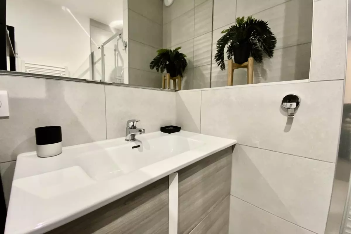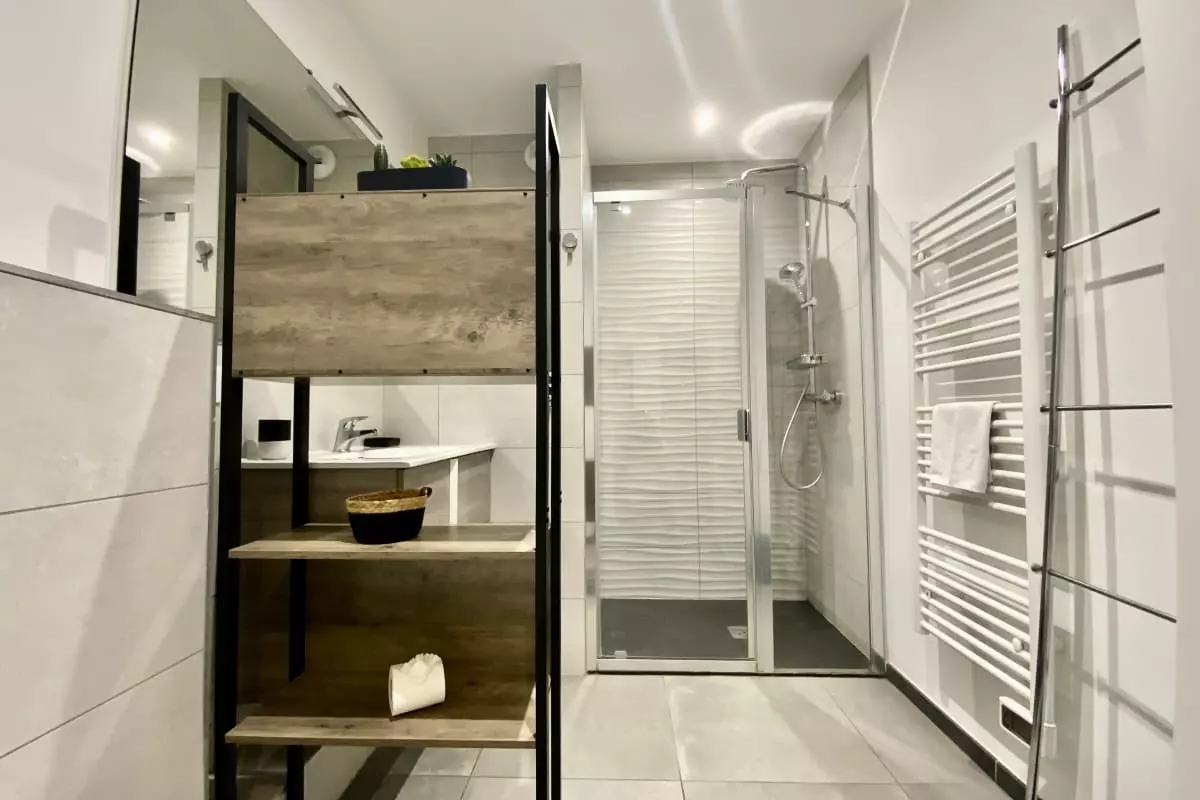 L'appartement dispose d'une salle de bains avec douche.