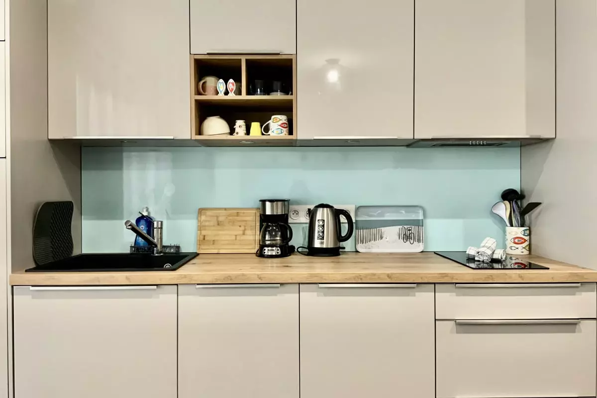 Sont à votre disposition tous les équipements nécessaires pour votre plus grand confort : machine à café, grille-pain, bouilloire, four, micro-onde, frigo... ainsi que tous les ustensiles nécessaires pour préparer de bons petits plats.