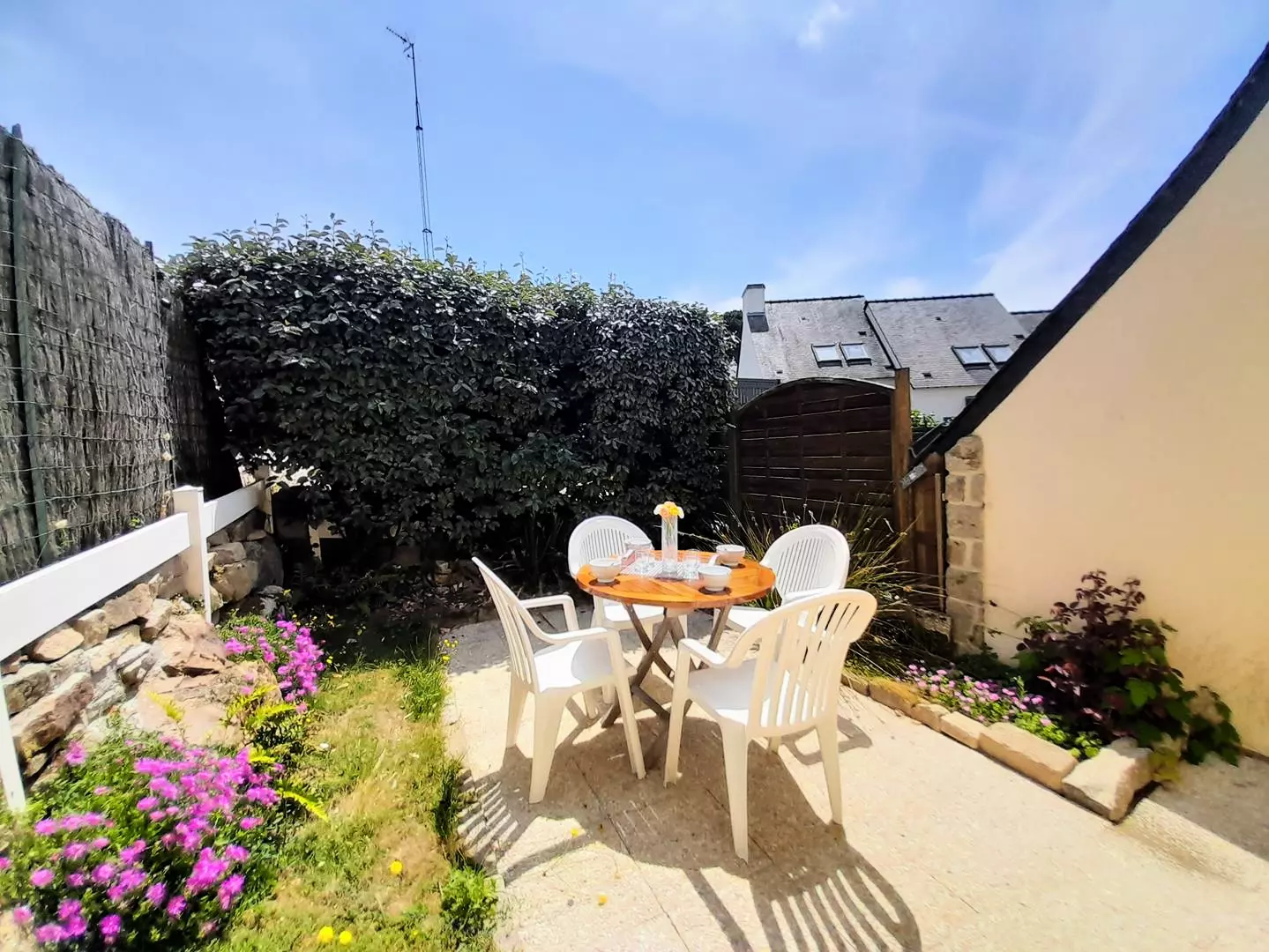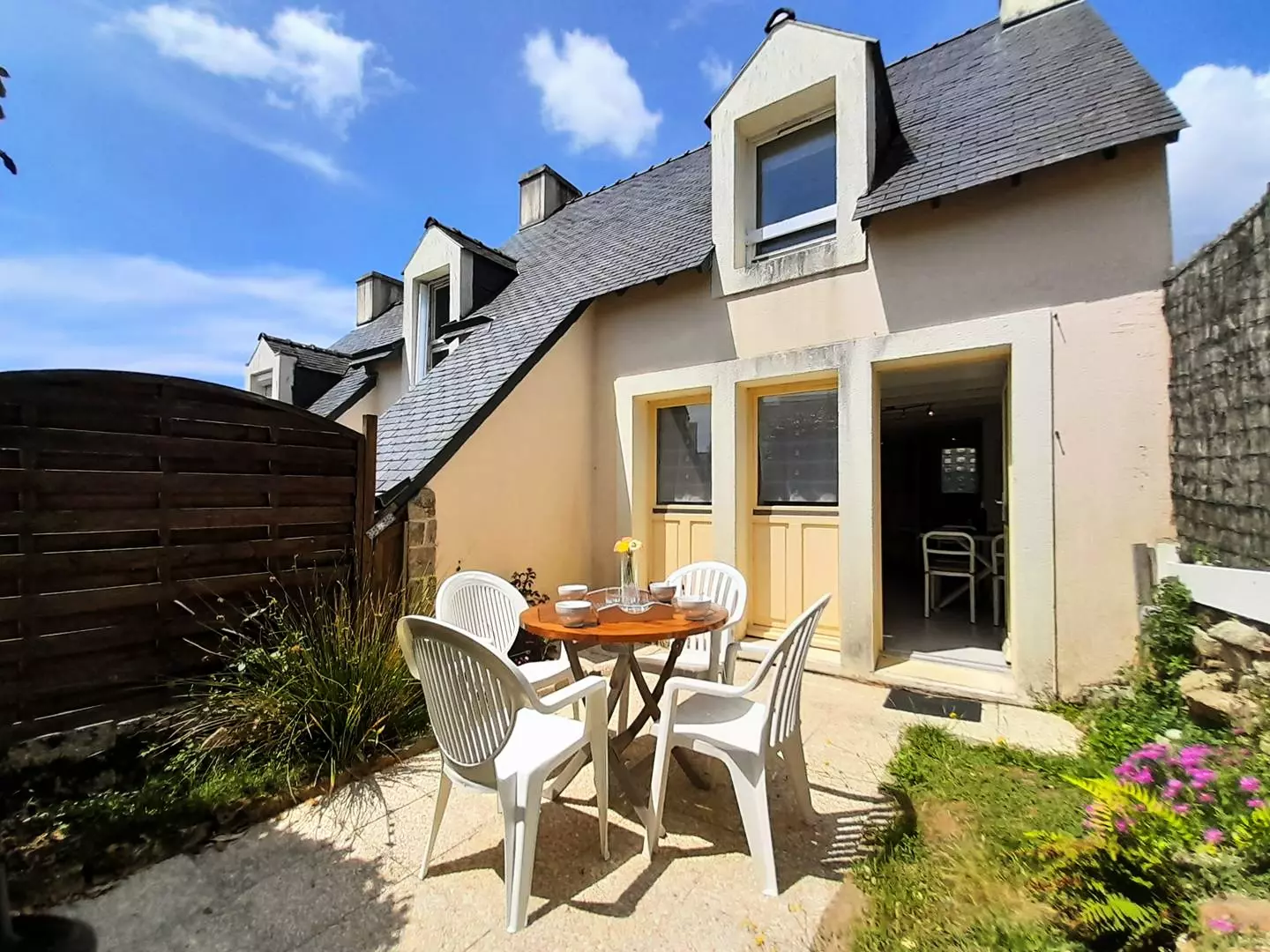 A 800m de la plage de Kervillen et à 1 km du port de la Trinité-sur-Mer, jolie maison mitoyenne 3 pièces (env. 40m²) pour 4 personnes avec terrasse close :