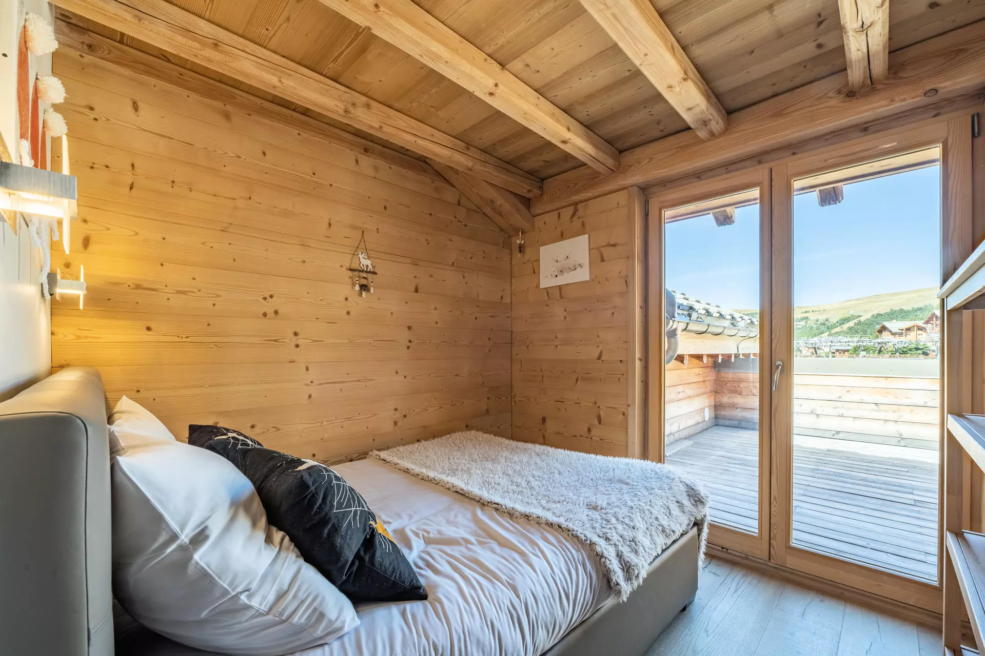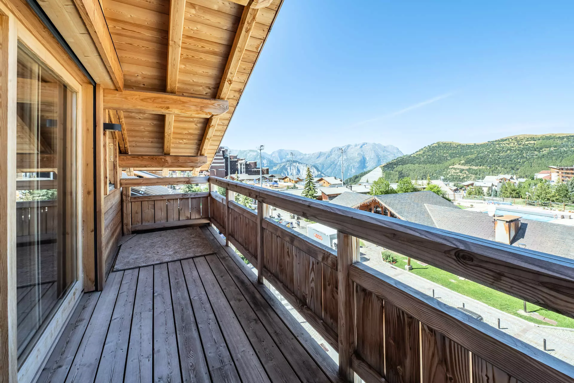 Il offre une vue dégagée sur les sommets de l'Oisans et permet un accès direct au domaine skiable en rejoignant le télécentre situé à seulement 200m de l'appartement.