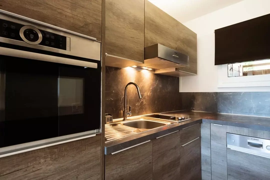 - KITCHENETTE (2.49 m²) : réfrigérateur + freezer (137 L), FOUR, MICRO-ONDES, TABLE VITROCERAMIQUE (2 FOYERS), LAVE-VAISSELLE, fenêtre nord fenêtre donnant sur coursives