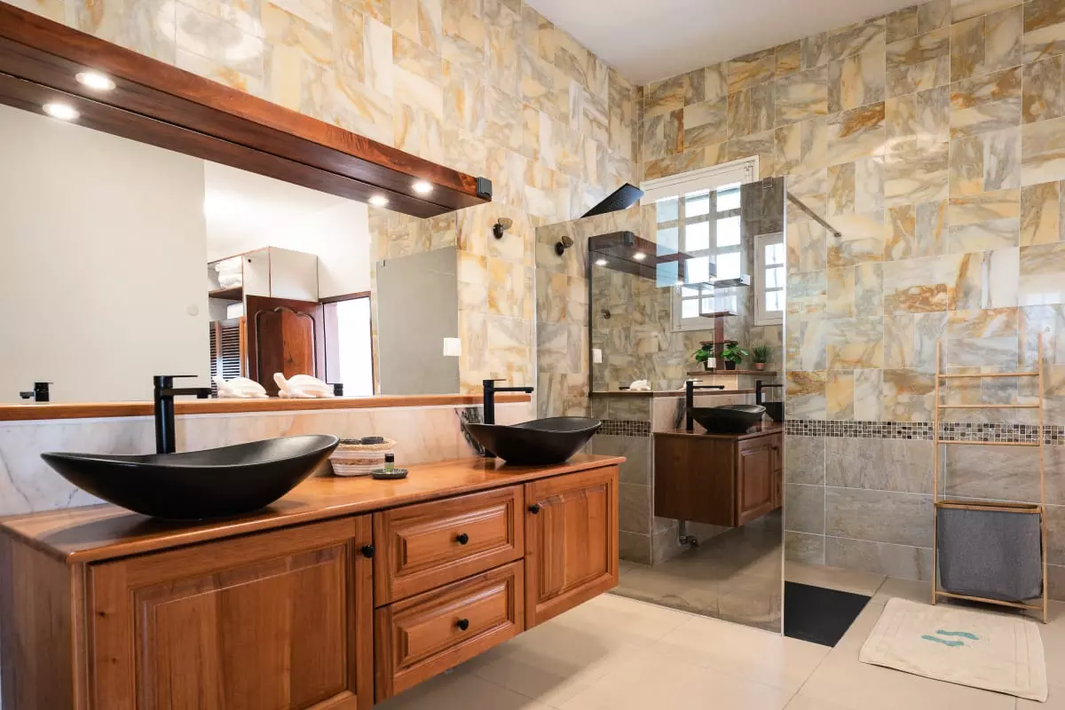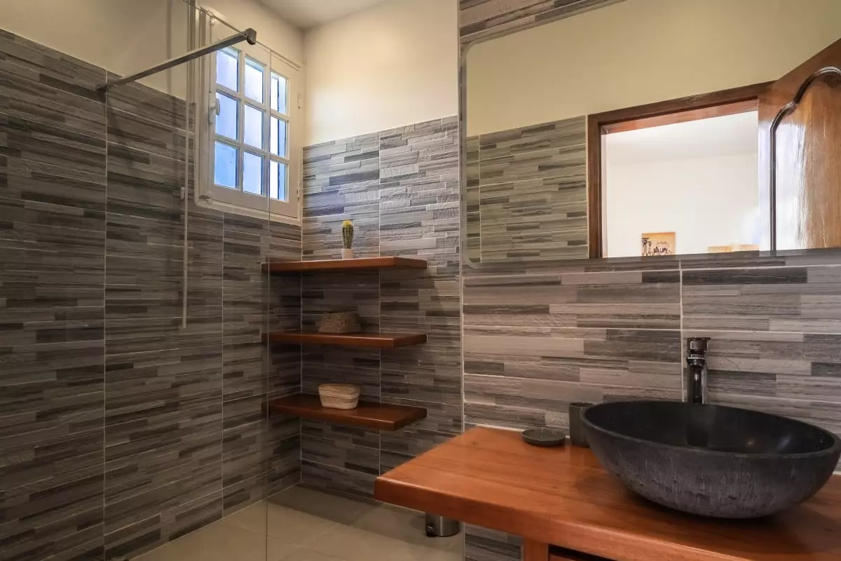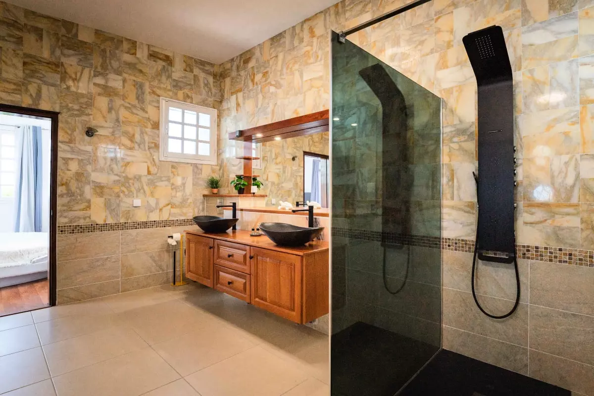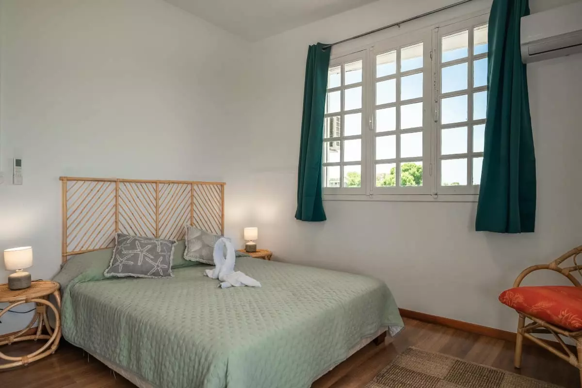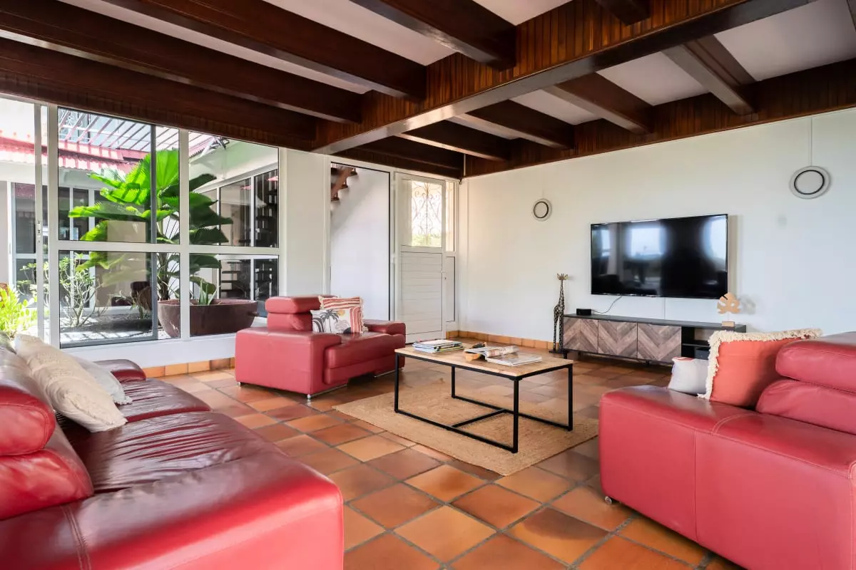 La villa Caïmite propose 240 m2 d'élégance répartis sur trois niveaux, pouvant accueillir confortablement jusqu'à 8 personnes. Ses quatre chambres sont aménagées avec soin : deux lits en 140 cm, un en 160 cm, et un grand lit rond vous attendent pour des nuits de sommeil réparateur. Trois salles de bain modernes et bien agencées garantissent confort et praticité, tandis que quatre WC assurent une intimité maximale.