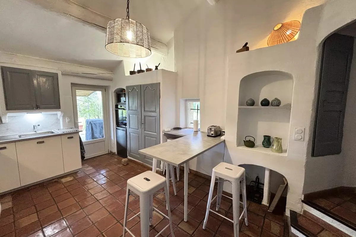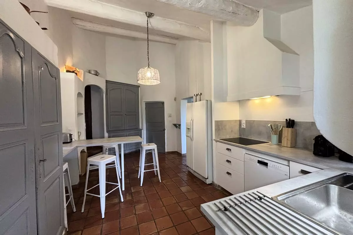 * Cuisine entièrement équipée avec accès direct à la terrasse.