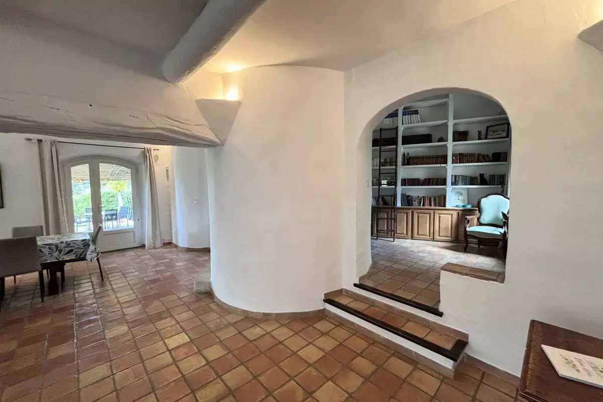 * Spacieuse pièce à vivre avec séjour confortable autour de la cheminée. Lumineuse avec ses grandes baies vitrées. Espace bibliothèque.