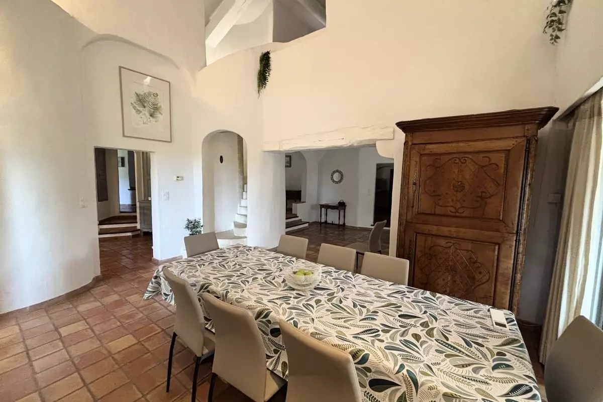 Belle villa provençale avec tous les atouts pour un séjour parfait en pleine campagne Aixoise. Spacieuse avec sa grande pièce à vivre et ses 5 chambres climatisées. Un jardin de 6000 m2 dédié à la détente et aux loisirs, piscine 12x6 avec plage, terrain de pétanque, table de tennis de table, terrasse ombragée. Environnement privilégié au calme et à l'abri des regards. Idéal pour un séjour en famille.
