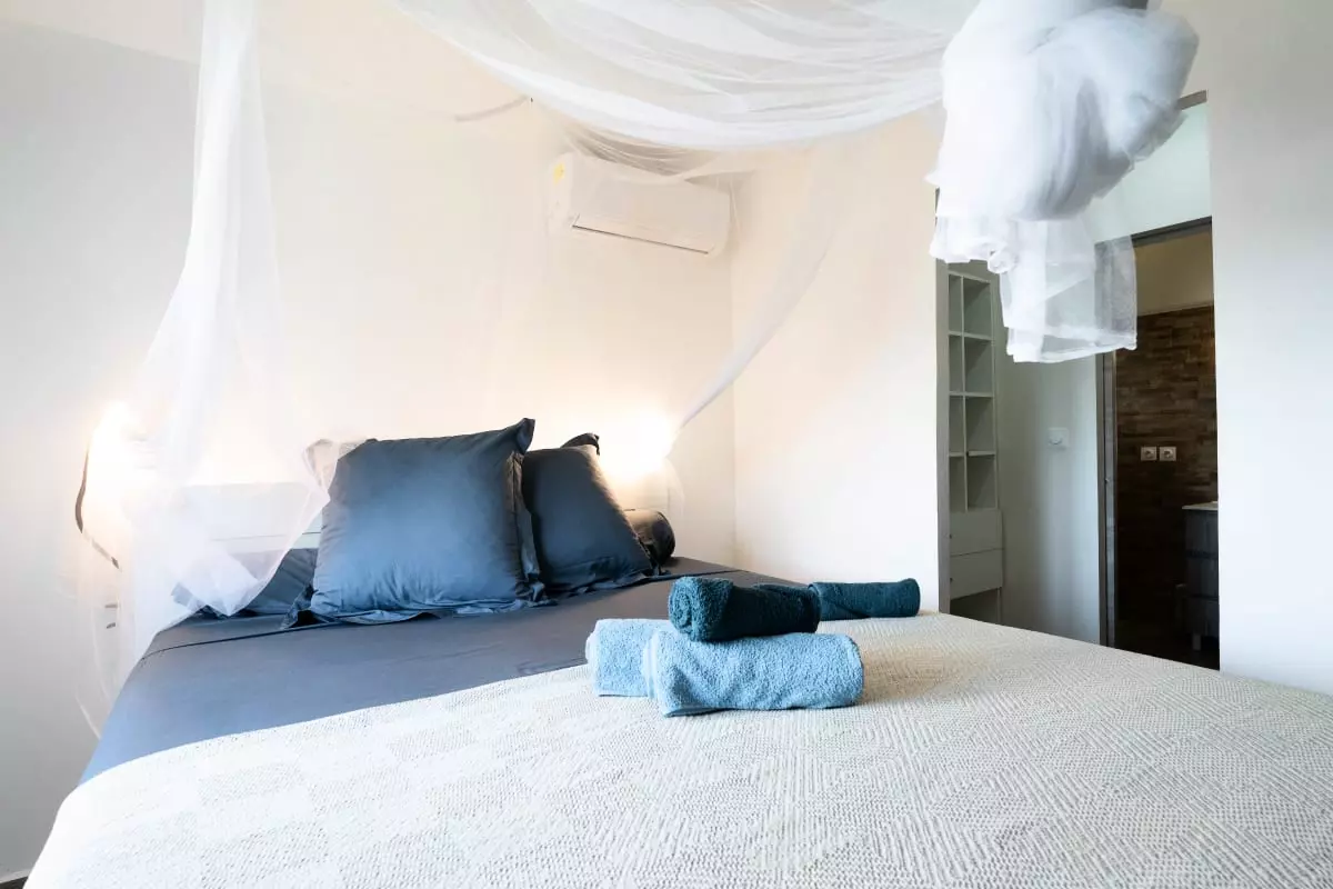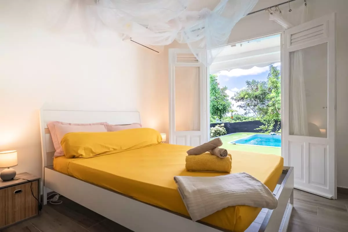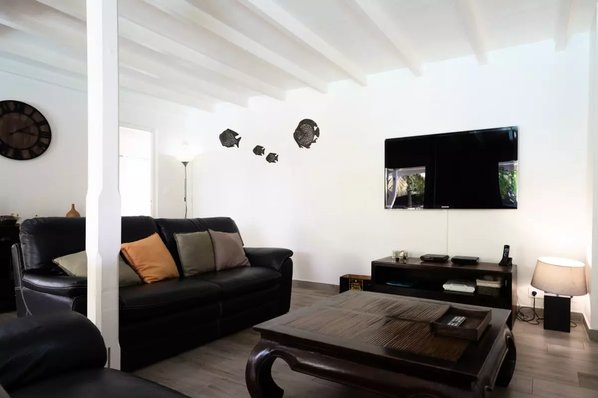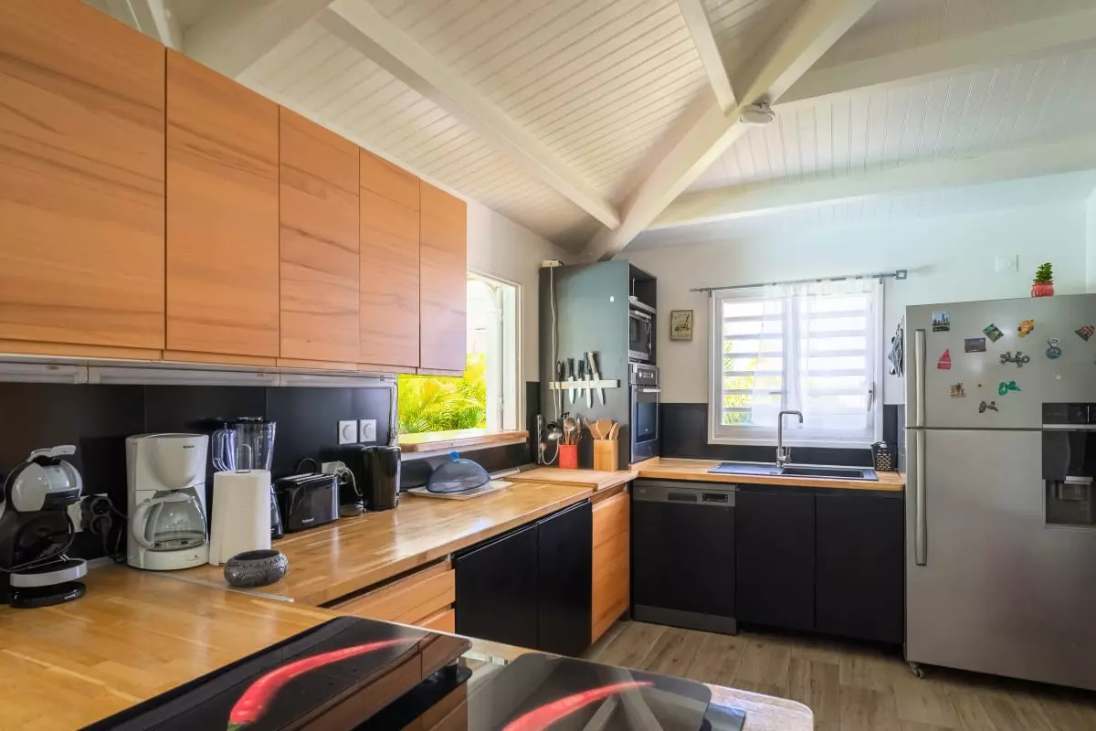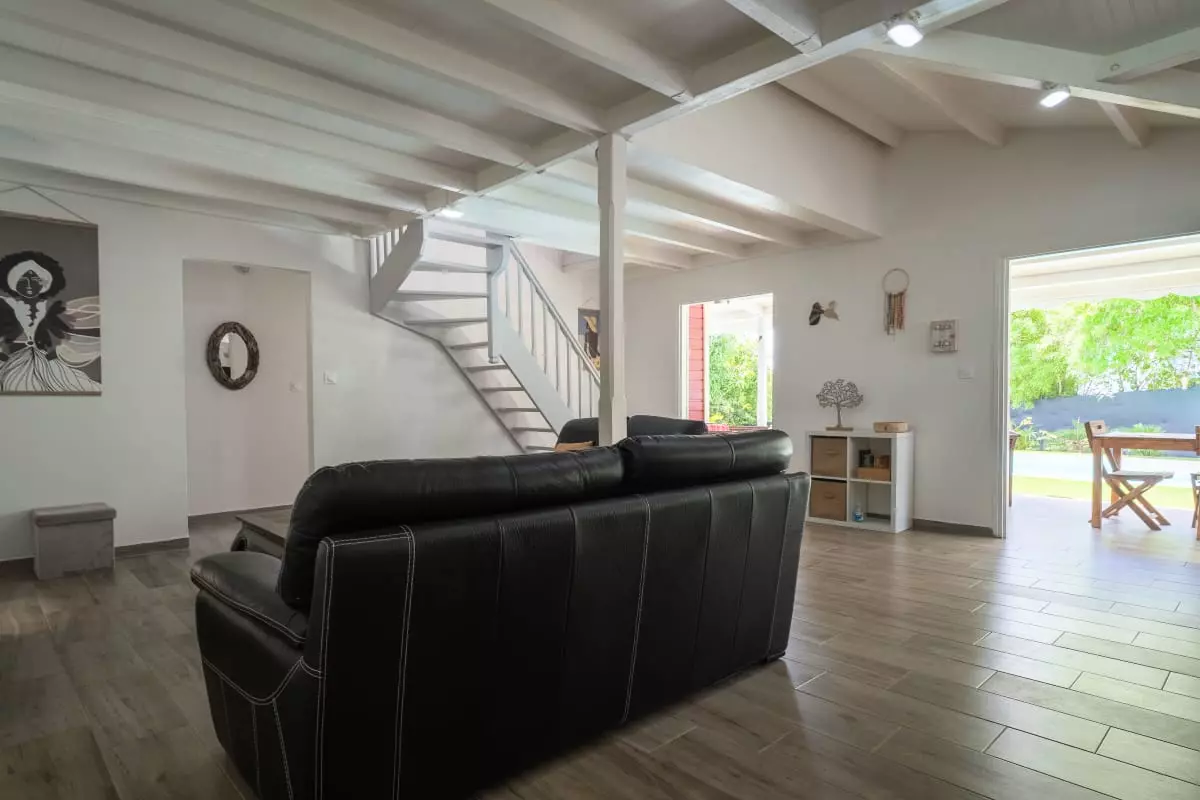 À l'intérieur, découvrez une habitation de 136 m² répartie en quatre chambres paisibles aux lits douillets, garantissant des nuits réparatrices pour toute la famille ou votre groupe d'amis. La cuisine équipée de tout le nécessaire est un appel à concocter des mets exotiques, tandis que le séjour, avec sa vue sur le jardin tropical où trône un majestueux manguier, vous offre le cadre idéal pour des moments de détente partagés.