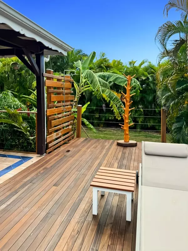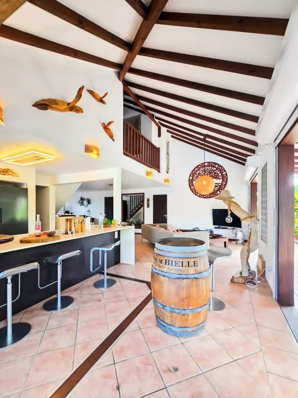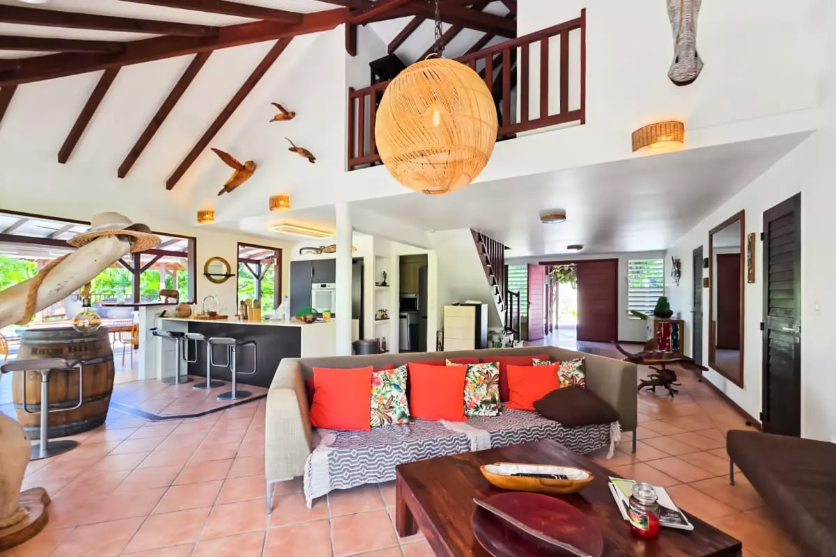 Au cœur d'une nature luxuriante, la Villa la Désirade vous accueille pour une expérience de calme et de sérénité. Une entrée privée et sécurisée s'ouvre sur ce havre de paix où la vie se déroule en harmonie avec l'environnement. C'est une invitation à la détente sous le carbet ou sur la terrasse, bercés par le murmure des alizés.