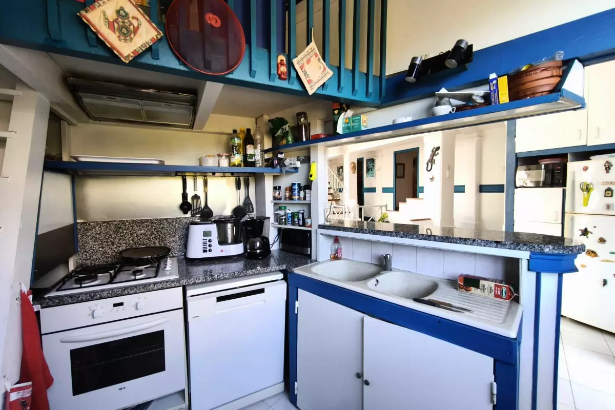 La maison comprend cinq chambres confortables, toutes équipées de lits doubles ainsi que 2 chambres cabines avec des lits superposés. Vous trouverez également une cuisine entièrement équipée pour préparer vos repas, ainsi que quatre salles de bain pour plus de praticité. Après une journée bien remplie, détendez-vous dans le salon lumineux, propice au repos et à la convivialité.