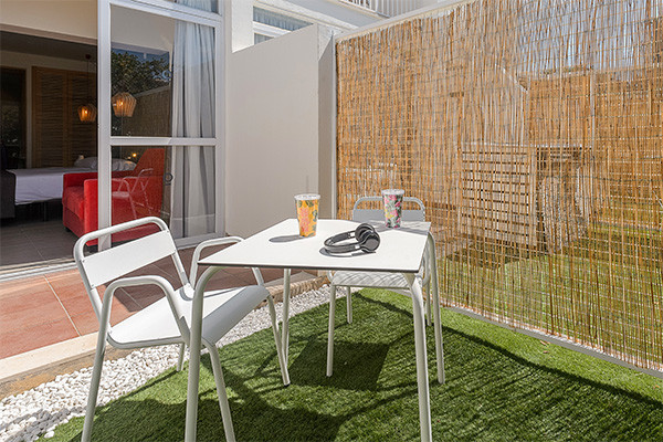- Chambre Chill Out (22 m²) : 2 lits simples, balcon avec chaises longues et parasol. Capacité maximale : 3 adultes (canapé-lit).