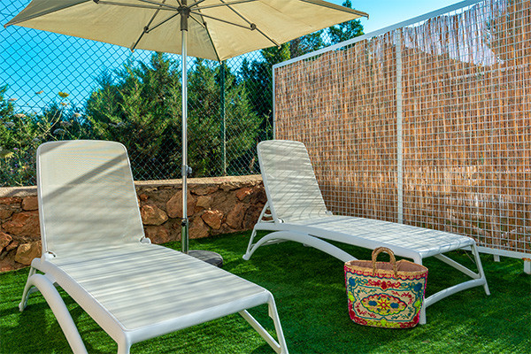 - Chambre supérieure (22 m²) : 2 lits simples, terrasse avec chaises longues et parasols. Capacité maximale : 3 adultes (canapé-lit).