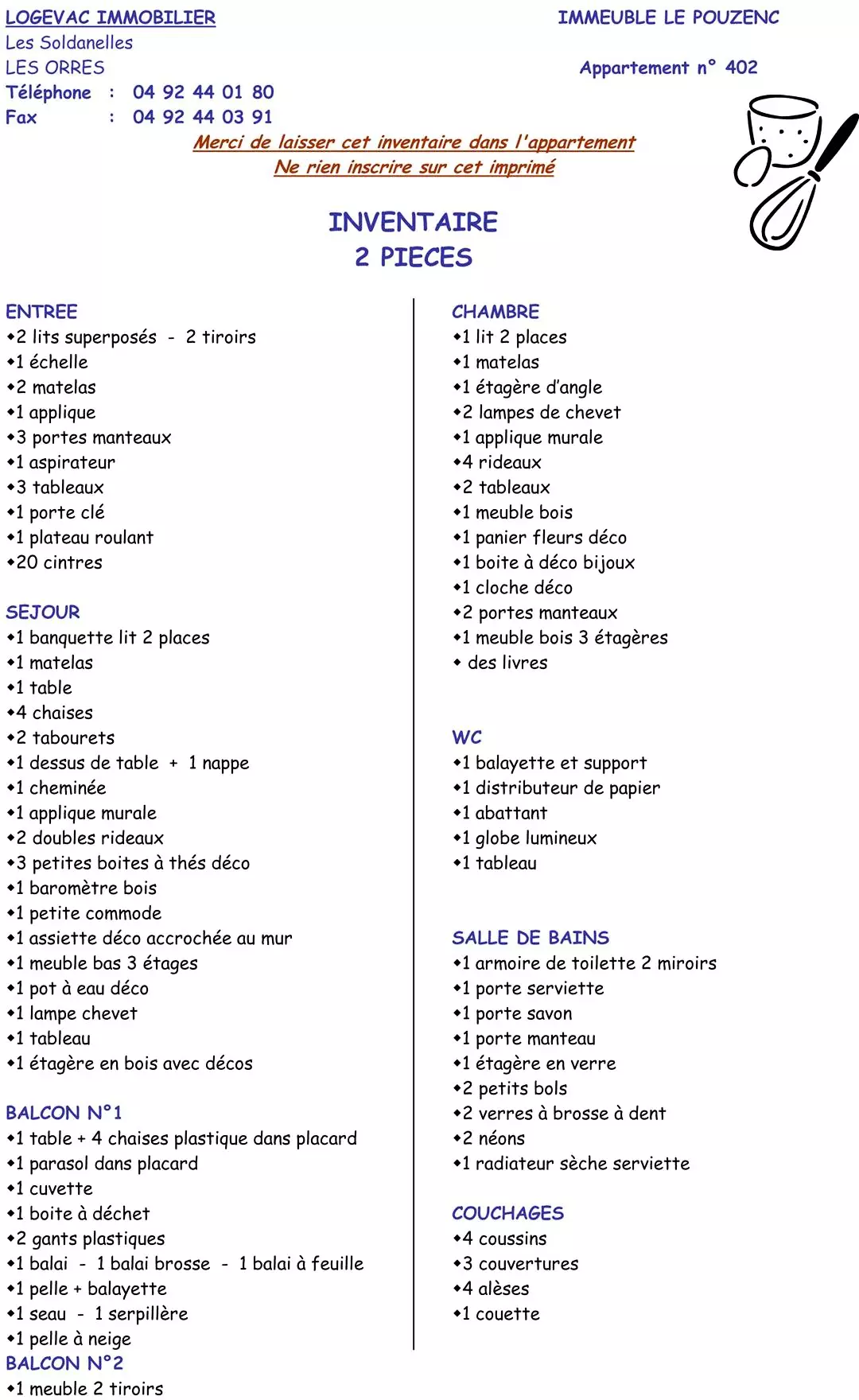 Le logementCe prix ne comprend pas