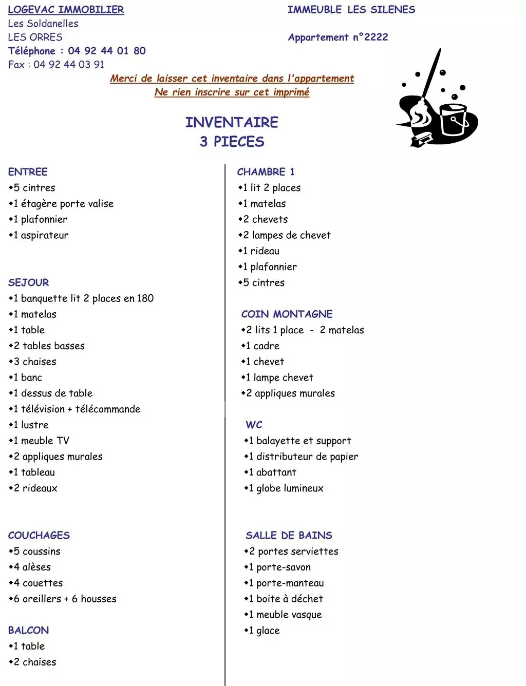 Le logementCe prix ne comprend pas