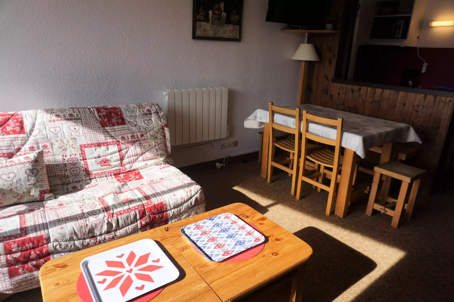 Studio cabine 27 m² environ, situé au 2éme étage; balcon exposition Sud avec vue sur la station et la vallée.