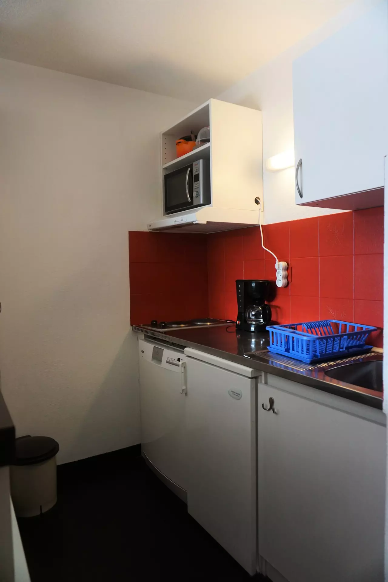 Kitchenette : 2 plaques-électriques, frigo, four, micro-ondes.