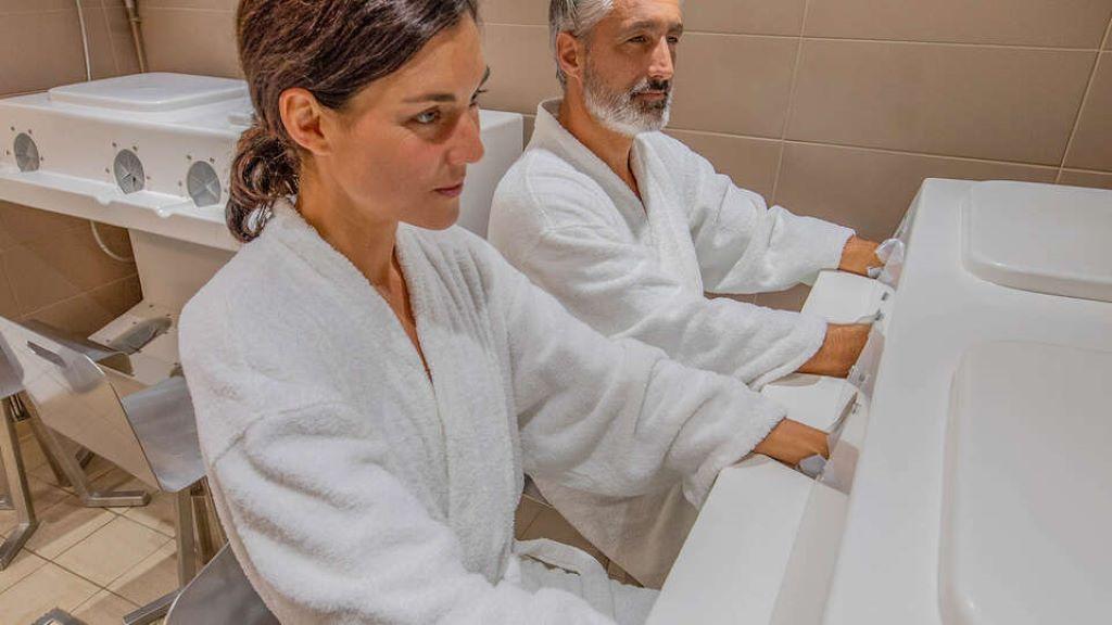 15 soins essentiels parmi : Aquagym en piscine thermal, douche sous-marine ou forte pression (en piscine), hydromassage (en baignoire, aérobion (en baignoire), étuves (mains et pieds), douche térébenthinée, pulvérisations, compresse (jambes), couloir de marche.