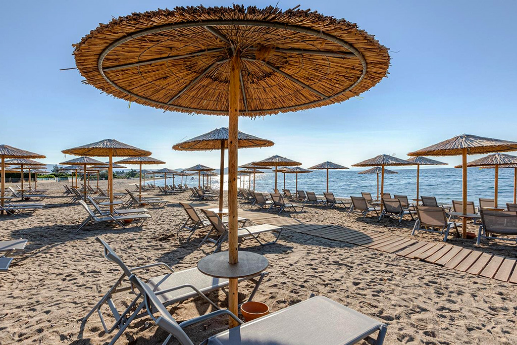 - Plage aménagée de chaises longues et parasols