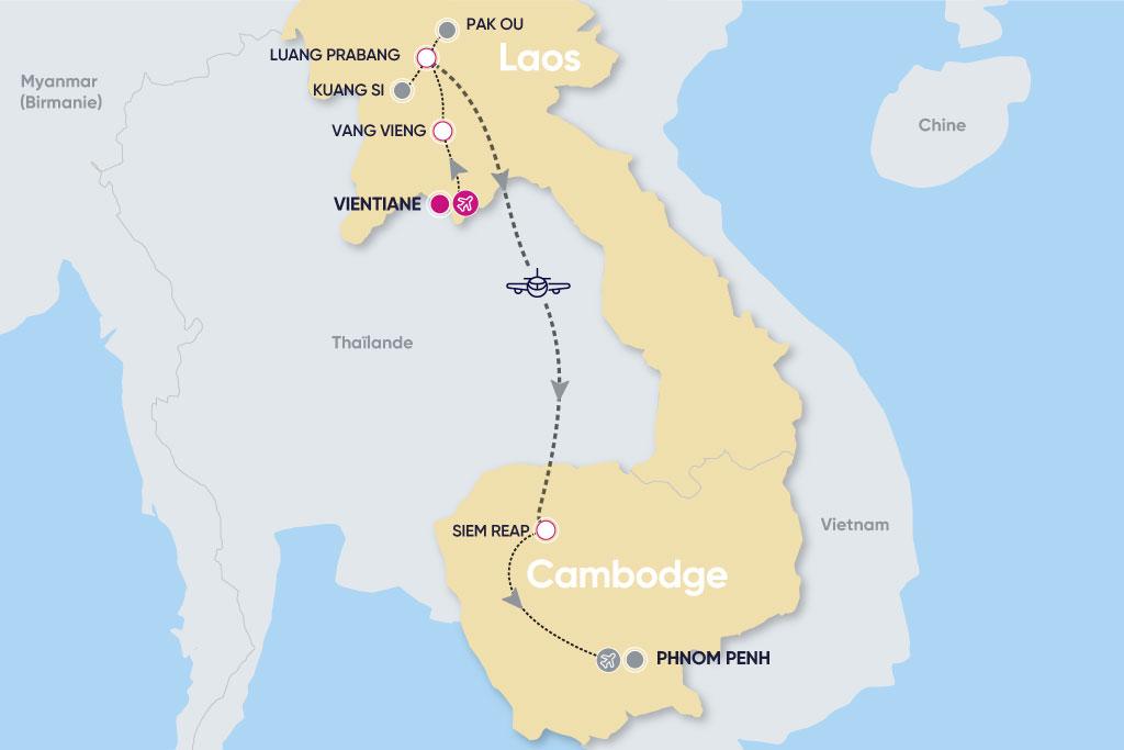 Itinéraires reliant Vientiane, Luang Prabang et Siem Reap